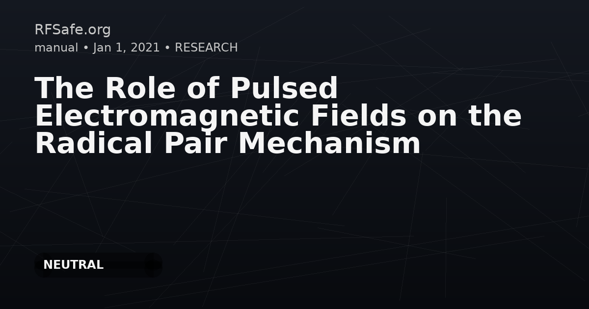 The Role of Pulsed Electromagnetic Fields on the Radical Pair Mechanism Pablo Castello, Pablo Jimenez, Carlos F Martino. The Role of Pulsed Electromagnetic Fields on the Radical Pair Mechanism. Bioelectromagnetics. 2021 Jul 5. doi: 10.1002/bem.22358. Abstract In recent decades, the use of pulsed electromagnetic fields (PEMF) in therapeutics has been one of the main fields of activity in the bioelectromagnetics arena. Nevertheless, progress in this area has been hindered by the lack of consensus on a biophysical mechanism of interaction that can satisfactorily explain how low-level, non- thermal electromagnetic fields would be able to sufficiently affect chemistry as to elicit biological effects in living organisms. This specifically applies in cases where the induced electric fields are too small to generate a biological response of any consequence. A growing body of experimental observations that would explain the nature of these effects speaks strongly about the involvement of a theory known as the radical pair mechanism (RPM). This mechanism explains how a pair of reactive oxygen species with distinct chemical fate can be influenced by a low-level external magnetic field through Zeeman and hyperfine interactions. So far, a study of the effects of complex spatiotemporal signals within the context of the RPM has not been performed. Here, we present a computational investigation of such effects by utilizing a generic PEMF test signal and RPM models of different complexity. Surprisingly, our results show how substantially different chemical results can be obtained within ranges that depend on the specific orientation of the PEMF test signal with respect to the background static magnetic field, its waveform, and both of their amplitudes. These results provide a basis for explaining the distinctive biological relevance of PEMF signals on radical pair chemical reactions. Conclusion Experimental observations speak strongly for the involvement of the radical pair mechanism in biological systems. For this purpose, we computationally studied whether a pulse train waveform can change the quantum singlet yields in a radical pair reaction. For a simple radical pair model, we demonstrated that the suggested reaction can be influenced by PEMFs. This conclusion does not rule out the possibility of induced electric field effects stemming from PEMFs. However, experimental evidence suggests controversial results with the use of PEMFs that cannot be explained by the accepted mechanism of action [Barnes and Greenebaum, 2018]. Our study establishes the role of PEMF as a diagnostic tool that may indicate the involvement of magneto-sensitive radical pair reactions in biological systems. Extending this tool to determine orientation and amplitude dependence in which the input PEMF waveforms affect the reaction products can reveal the chemical nature of the radical pairs involved. Finally, using the oscillating or PEMF input waveform as a diagnostic tool to modify singlet quantum yields can easily be transferred to finding the optimal control to maximize the singlet yield. At the most fundamental level, one could investigate how a radical reaction can be controlled by perturbing spin interconversion to maximize a cost functional, the quantum singlet yield, through the selection of optimal control functions, namely the magnetic waveform. pubmed.ncbi.nlm.nih.gov