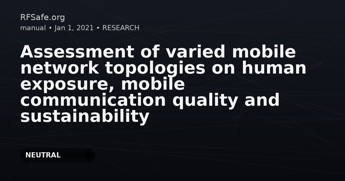 "main_findings": "Using a Swiss-adapted mobile network planning tool, simulations of 4G and 5G topologies (rural/suburban/urban; 2030 usage) found that uplink (user device) exposure ratios were on average at least tenfold higher than downlink (base station) exposure ratios. The transition from 4G to 5G was reported to reduce human exposure in most simulated scenarios while providing ~10× capacity; 5G with adaptive antennas (MaMIMO) showed trends toward lower uplink and downlink exposure ratios versus 4G, with rural downlink exposure ratio reduced ~2× by adaptive antennas (average exposure not affected in urban/suburban). Separating indoor/outdoor coverage reduced outdoor downlink exposure (~4×) but led to uncovered indoor locations on average; indoor downlink exposure was not affected and uplink exposure stayed in the same range. Unifying operators’ networks did not change exposure considerably but could reduce required base station sites (~13% to 50%, depending on environment/technology) and improve uplink exposure versus smaller-operator networks; achieving 5G speeds vs 4G speeds required ~3× as many base stations on average, and additional extreme capacity for 5% of users increased exposure. Millimeter-wave (24.25–27.5 GHz) was not modeled.",