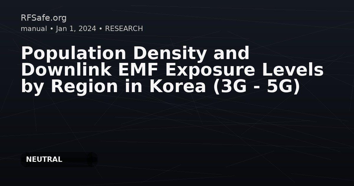 Population Density and Downlink EMF Exposure Levels by Region in Korea (3G - 5G) Lee AK, Jeon S, Wang S, Wiart J, Choi HD, Moon JI. Population Density and DL EMF Exposure Levels by Region in Korea. 2024 IEEE Asia-Pacific Microwave Conference (APMC), Bali, Indonesia, 2024, pp. 781- 783, doi: 10.1109/APMC60911.2024.10867416. Abstract In 2023, the electric field strength within mobile communication bands was measured in the largest city (Seoul), a small city (Gwangju, Gyeonggi province), and a rural area (Yangpyeong, Gyeonggi province) in South Korea. The three measurement regions were selected based on population density; The population densities of Seoul, Gwangju, and Yangpyeong are about 15,550/km2, 856/km2, and 133/km2, respectively. Measurements were performed by mounting the SRM3006 antenna on the roof of a vehicle and driving for approximately 40 km in each region. In this paper, the authors report the results of analyzing downlink RF-EMF levels in mobile communication networks currently in operation by frequency, time, and region. ieeexplore.ieee.org The median of total DL E-field strength for all generations was 1.75 V/m (Seoul), 0.75 V/m (Gwangju), and 0.61 V/m (Yangpyeong); The difference in DL EMF between the small city and rural area was not large, but that in Seoul was significantly higher. Discussion and Conclusions For most users, 5G terminals will spend a significant portion of time not connected to the base station. Therefore, regardless of whether the terminal is connected to the 5G network, it is necessary to distinguish the level of radiated EMF caused by the SSB beam(s), which is (are) the only always-on signal in 5G NR, from the 5G base station. It is impossible to distinguish between the always-on signal radiated from 5G base stations and signals generated by the use of 5G UEs using the measurement method reported in this paper. In a future study, we plan to estimate the average SSB EMF level radiated from the 5G base station with the Synchronization Signal Reference Signal Received Power (SS-RSRP) received by the terminal. We also seek to compare the total exposure level to DL EMF by all mobile networks with previously measured levels in terms of brain dose [3]. In Korea, CDMA2000 (2G) was terminated in early 2021, and WCDMA, LTE, and 5G NR are currently in service. At the time of measurement, i.e. around November 2023, the ratio of 3G subscriptions is about 2.6% of total mobile communication subscriptions, with 4G and 5G accounting for the majority; About 58.6% and 38.8% respectively. The DL EMF level by service technology generation did not match the corresponding subscription rate. Currently, the number of 4G mobile communication base stations installed in Seoul is estimated at about 70% of the total, and those of 3G and 5G are analyzed to have similar ratios of 10 to 20% each. Compared to the ratio of subscriptions to the 5G service, the number of base stations installed is still very low. Therefore, the DL EMF exposure will continue to change in the coming years, so continuous monitoring is necessary. Additionally, since the base station installation information can be a good parameter related to the DL EMF level, it seems important to obtain data on this.