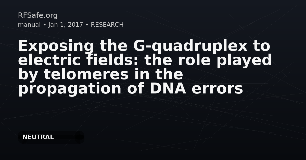 "summary": "This paper reports theoretical calculations on how pulsed electric fields may affect DNA base pairing and telomeric G-quadruplex structures. The authors suggest fields can induce permanent noncanonical GC base pairs, while telomeric G-quadruplex motifs better preserve their native form up to a stated field-strength threshold. They argue this could allow selective mutations in genetic code without corresponding transcription of errors into telomeres.",