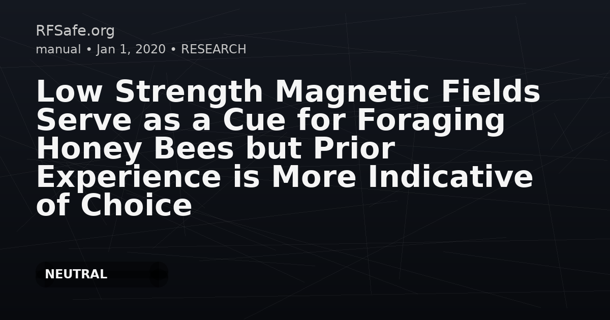 Low Strength Magnetic Fields Serve as a Cue for Foraging Honey Bees but Prior Experience is More Indicative of Choice Ana M Chicas-Mosier, Medhat Radi, Jack Lafferrandre, John F O'Hara, Hitesh D Vora, Charles I Abramson. Low Strength Magnetic Fields Serve as a Cue for Foraging Honey Bees but Prior Experience is More Indicative of Choice. Bioelectromagnetics. 2020 Jul 20. doi: 10.1002/bem.22285. Abstract Species of migrating insects use magnetic fields as a navigational tool that is independent of current weather conditions and non-migrating species have been shown to discriminate anomalies in magnetic field from the earth's baseline. Honey bee discrimination of magnetic field has been studied in the context of associative learning, physiology, and whole hive responses. This article uses a combination of free-flight and laboratory studies to determine how small fluctuations from Earth's magnetic field affect honey bee (Apis mellifera L.) decision-making. Honey bees were tested in three experiments: (i) recruitment to an aqueous sucrose feeder, (ii) an artificial free-flight flower patch with floral color-dependent magnetic field strength, and (iii) a Y-maze with alternating colors on a stronger magnetic field. In free-flying feeder experiments, magnetic field served as a temporary cue, but when offered an equal caloric alternative with lesser magnetic field, the latter was preferred. Flower patch experiments showed initial color biases that were abandoned as a response to magnetic field induction. In laboratory experiments, bees showed a color-dependent behavioral response to the magnetic field. The results of this study indicate that bees may use small fluctuations in magnetic fields as a cue but that it is likely low-value as compared with other stimuli pubmed.ncbi.nlm.nih.gov