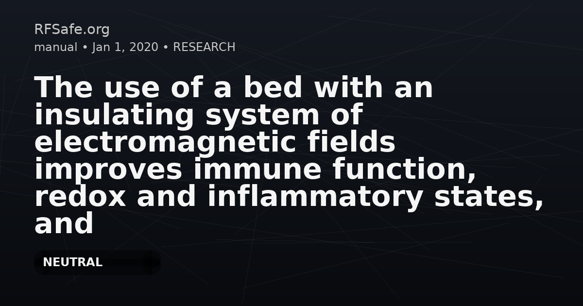 "main_findings": "After 2 months of using the EMF-insulated bed system, participants showed significant improvements in immune functions and antioxidant/anti-inflammatory defenses, with decreases in oxidants and pro-inflammatory compounds, reduced oxidative damage in lipids and DNA, and a reduction in calculated biological age. The placebo group reportedly showed no changes.",