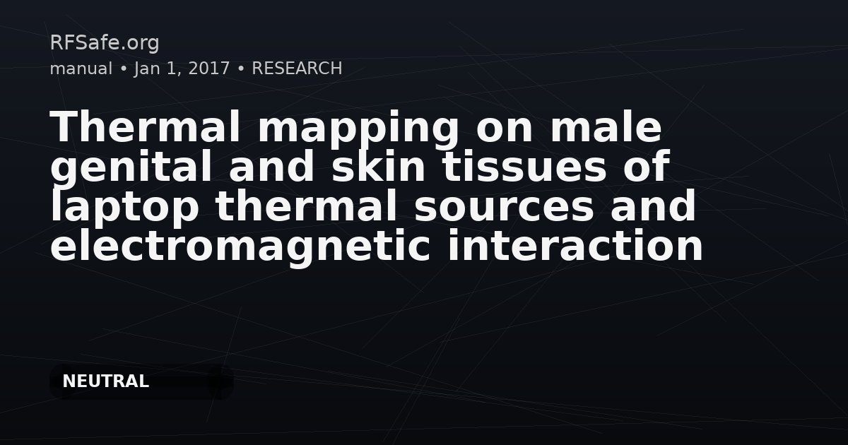 Thermal mapping on male genital and skin tissues of laptop thermal sources and electromagnetic interaction Safari M, Mosleminiya N, Abdolali A. Thermal mapping on male genital and skin tissues of laptop thermal sources and electromagnetic interaction. Bioelectromagnetics. 2017 Aug 11. doi: 10.1002/bem.22068. Abstract Since the development of communication devices and expansion of their applications, there have been concerns about their harmful health effects. The main aim of this study was to investigate laptop thermal effects caused by exposure to electromagnetic fields and thermal sources simultaneously; propose a nondestructive, replicable process that is less expensive than clinical measurements; and to study the effects of positioning any new device near the human body in steady state conditions to ensure safety by U.S. and European standard thresholds. A computer simulation was designed to obtain laptop heat flux from SolidWorks flow simulation. Increase in body temperature due to heat flux was calculated, and antenna radiation was calculated using Computer Simulation Technology (CST) Microwave Studio software. Steady state temperature and specific absorption rate (SAR) distribution in user's body, and heat flux beneath the laptop, were obtained from simulations. The laptop in its high performance mode caused 420 (W/m2 ) peak two-dimensional heat flux beneath it. The cumulative effect of laptop in high performance mode and 1 W antenna radiation resulted in temperatures of 42.9, 38.1, and 37.2 °C in lap skin, scrotum, and testis, that is, 5.6, 2.1, and 1.4 °C increase in temperature, respectively. Also, 1 W antenna radiation caused 0.37 × 10-3 and 0.13 × 10-1. ncbi.nlm.nih.gov Excerpts Findlay and Dimbylow [2010] carried out one such study on SAR in the body of a sitting 10-year-old at 2.4 and 5 GHz. They found maximum peak localized three-dimensional (3D) SAR of 3.99 × 10−3 (W/kg) in the torso area. It should be specified that this study only considered thermal effects on men; however, laptop antenna could have non-thermal effects on the user's body or pregnant women, including DNA fraction [Nagaoka et al., 2007; Zoppetti et al., 2011; Avendano et al., 2012], but such non-thermal effects are not considered in the present paper. Since maximum allowed power consumption for an array of antennas designed for this purpose is 1 W and there were two antennas, each one consumed up to 0.5 W of power. However, in normal conditions, Wireless Local Area Network (WLAN) antennas can radiate using only 10 mW [Guterman et al., 2009]. It should be noted that the given values of SAR were normalized to 1 W peak antenna power output, while typically a WLAN antenna radiates about 10 mW; therefore, for a real world operating system, maximum SAR of 0.37 × 10−3 and 0.18 × 10−3 (W/kg) is expected for 2 and 1 active antennas, respectively, which are 104 times lower than the European safety limit (2 W/kg) [IEEE Standard for Safety Levels with Respect to Humans, 2005]. Also, maximum SAR of 0.13 × 10−3 (W/kg) is expected for a WLAN antenna radiation power of about 10 mW operating at 5 GHz, which is still lower than safety limits. ... maximum temperature on surface of scrotum skin of the laptop user in the studied position was 38.1 °C, which was 2.1 °C higher than normal temperature in absence of the laptop in the simulation. It can be inferred from the aforementioned works that increase in scrotal temperature can result in reduction of sperm motility, which consequently enhances the probability of infertility, lessens sperm production, decreases sperm concentration by 56% [Hjollund et al., 2002], increases ROS, and negatively affects sperm morphology, increasing the number of sperm with physical dimensions different from those of normal sperm. A method of simulating thermal mapping of positioning laptop on laps of an adult man was developed. To tackle this problem, we exploited computer simulation and, to make the simulation close to the actual problem, we created 3D models of an actual laptop (Sony FW 590 Gab), antennas, and human phantom with inhomogeneous body, large number of tissues, and dispersion properties. We employed a commercial laptop Wi-Fi antenna at 2.4 GHz and a dipole antenna at 5 GHz, thermal sources with radiation powers, and human body voxel consisting of 97 tissues which were described previously. In the simulation, maximum SAR in human body was calculated 0.37 × 10−3 and 0.13 × 10−1 (W/kg) at 2.4 and 5 GHz, respectively, which was negligible according to IEEE standards; thus, the major calculated temperature elevation was due to laptop thermal sources. The temperature in glans penis, lap skin, lap muscles, and testes increased up to 37.8, 42.9, 38.8, and 37.2 °C, respectively, which was in line with clinical studies of thermal effect. Hence, the proposed method can be replicated for other scenarios. It is worth noting that the presented result cannot be easily generalized to other devices or human models. However, the whole method is replicable for similar phenomena. The recommended subject for future works can be used with the presented method for determining the effect of laptop and other devices on adult pregnant women and similar cases.
