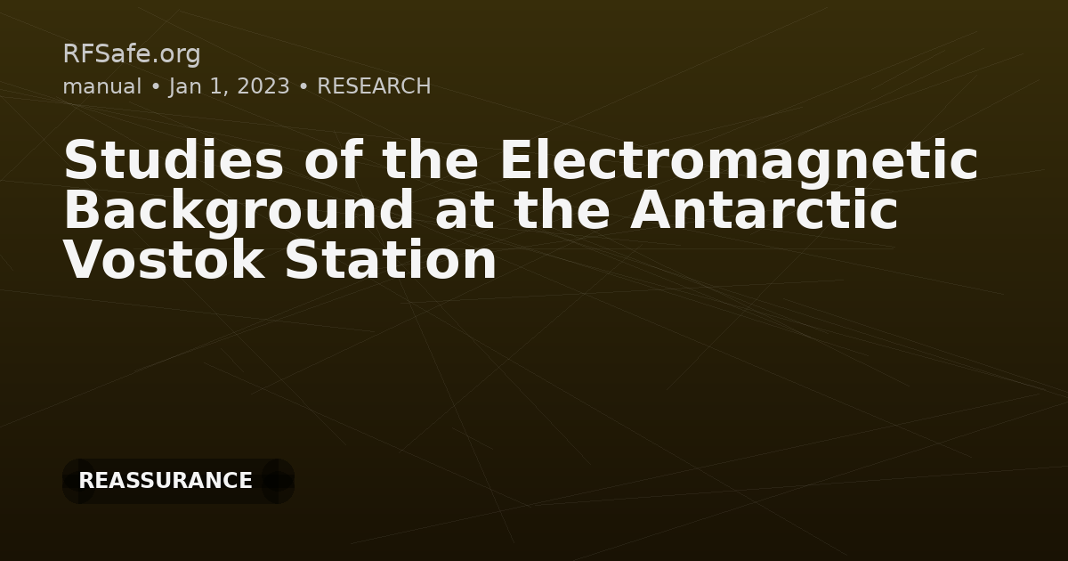 Studies of the Electromagnetic Background at the Antarctic Vostok Station Shurshakov VA, Belov EV, Ilyin EA, et al. Studies of the Electromagnetic Background at the Antarctic Vostok Station. Hum Physiol 49, 906–909 (2023). doi: 10.1134/S0362119723070216. Abstract The electromagnetic background was measured in the living quarters of the Vostok Station located on the Antarctic plateau distant from the potential sources of technogenic electromagnetic fields. The level of E-radiation in the range from 0.8 to 8 GHz was determined using a MERA integral dosimeter. Based on the results of long-term continuous (one to 4 months) measurements, the mean flux density was equal to 1.5 ± 0.8 nWt/cm, which is nearly 7000 times lower than the admissible level for population adopted in Russia. The Antarctic Vostok Station can be considered as a plausible location for biomedical investigations into the effects of low-frequency electromagnetic radiation. Conclusions (1) The EFD values of technogenic EMR in the living quarters of the Vostok Station are 7 thousand times below the regulatory standards for EMR in the Russian Federation. This fact indicates that the long-term stay of people at the Vostok Station is safe as regards the sanitary standards for EMR. [The Russian regulatory standards for EMR 0.3–300 GHz are 1000 μW/cm2 for personnel and 10 μW/cm2 for the population.] (2) The daily dynamics of the main frequencies in EMR EFD variability and its dependence on solar activity have been revealed. (3) Since the members of polar expeditions at the Vostok Station perform daily outdoor work (up to 1.5 h), it would be reasonable for future expeditions to measure the EFD of EMR in an open area, which will allow estimating the natural (background) level of EMR EFD in the vicinity of the station. The Antarctic Vostok Station can be considered as one of the possible places for conducting biomedical research under the conditions of reduced electromagnetic radiation flux. Open access paper: link.springer.com