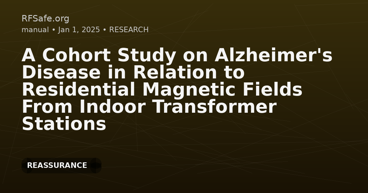 Category: Epidemiology Tags: Alzheimer's disease, magnetic fields, ELF, residential exposure, transformer stations, cohort study, neurodegenerative risk DOI: 10.1002/bem.70031 URL: onlinelibrary.wiley.com Overview Meta-analyses of epidemiological studies have suggested that Alzheimer's disease (AD) may be linked with exposure to extremely low frequency (ELF) magnetic fields (MF). This study is the first to investigate the association of AD with exposure to residential ELF MFs from indoor transformer stations, utilizing a cohort design specifically engineered to avoid limitations of prior research. Study Design and Methods - All participants lived in buildings containing indoor transformer stations. - MF exposure assessment was based on apartment location in relation to the transformer room. - AD patient identification relied upon Drug Purchase and Reimbursement Registers. - Of 155,562 individuals, 5652 (111,357 person-years) next to transformer stations were considered exposed; 115,772 (2,289,526 person-years) on higher floors served as referents. - Cox proportional hazard models examined associations between MF exposure and AD incidence. Findings - The hazard ratio (HR) for AD among those exposed to residential ELF MFs was 1.02 (95% CI: 0.85-1.22), indicating no significant association. - Duration of residence near transformer stations did not materially impact AD risk. - The HR was slightly but not significantly higher (HR 1.22, 95% CI: 0.94-1.57) for subjects whose residence began prior to age 50. - Results did not replicate positive associations reported by previous occupational or residential MF exposure studies. Conclusions - No evidence was found linking high-level residential ELF MF exposure from indoor transformer stations to increased risk of AD. - Authors recommend future research to examine occupational ELF MF exposures and potential diurnal (night vs day) differences in MF risk for AD.
