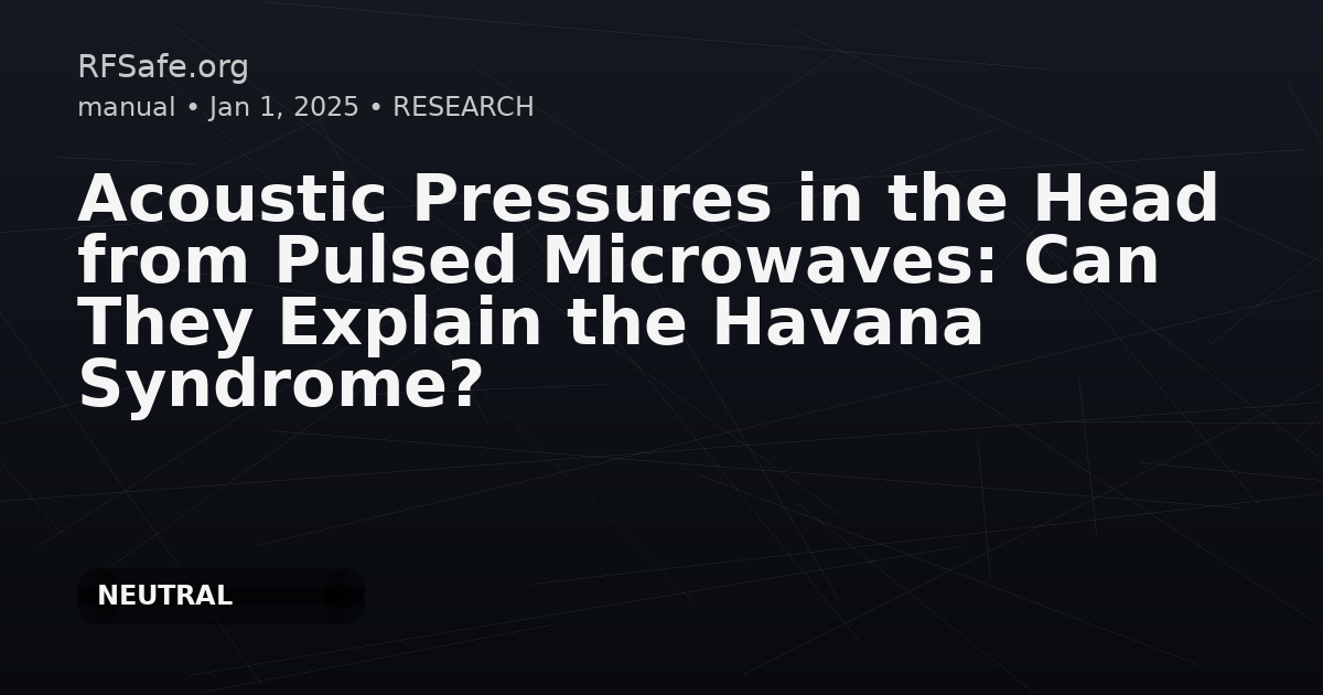 Category: Biophysics Tags: microwave auditory effect,pulsed microwaves,Havana Syndrome,electromagnetic fields,acoustic pressure,health risk,high powered microwave pulses DOI: 10.36227/techrxiv.175502739.93949559/v1 URL: techrxiv.org Overview The microwave auditory effect—referring to "clicks" or "buzzing" sensations that a person experiences when their head is exposed to pulsed microwave energy, such as emitted by radar transmitters—has been known since the 1960s. Background - Originally considered a threshold hearing phenomenon. - The effect has gained renewed interest due to the advent of high powered microwave sources in recent decades. Findings There is discussion about whether this effect could pose a potential danger—especially health risks—for individuals exposed to high powered microwave pulses. Conclusion This study considers if acoustic pressures in the head, generated by pulsed microwaves, can explain health conditions such as the "Havana Syndrome," highlighting the importance of evaluating risks from electromagnetic field exposures.