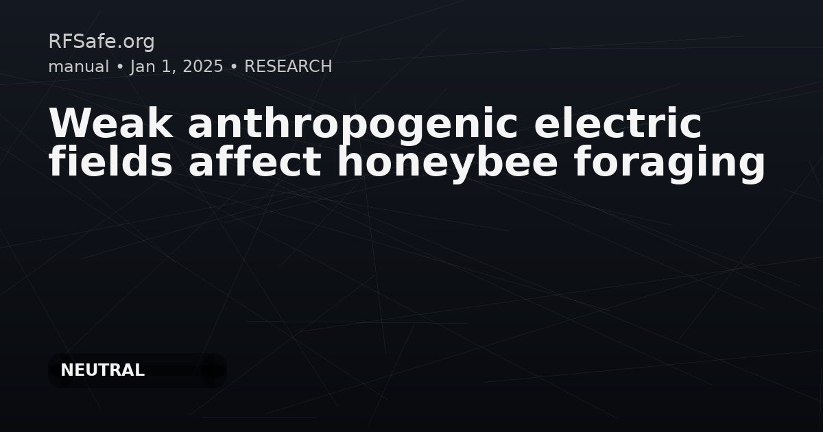 Category: Ecology Tags: electromagnetic fields, honeybees, pollination, electric pollution, foraging behavior, AC fields, DC fields DOI: 10.1016/j.isci.2025.112550 URL: cell.com Overview Aerial electroreception, or the detection of airborne electric fields (E-fields), is a recently recognized sensory system in arthropods such as bees. Bees utilize floral E-fields as foraging cues, but the potential impact of anthropogenic (human-made) E-fields on these critical interactions has been largely unexplored. Findings - 🌼 Weak anthropogenic-like electric fields reduce honeybee floral landing rates. - ⚡ Both alternating current (AC) and positive direct current (DC) fields deter honeybee landings—with reductions of 71% and 53%, respectively. - ➖ Negative DC fields show no statistically significant effect on honeybee landing behavior. - 🏞️ Experimentally measured electric fields near high-voltage power lines match those that affected bees, extending across tens of meters at foraging-relevant heights. Conclusion These findings reveal an important link between electric pollution and the potential disruption of plant-pollinator interactions. The alteration of bee foraging by anthropogenic E-fields poses risks to pollination efficiency — threatening agriculture and biodiversity. The study urgently calls for more research on the ecological impacts of electric pollution.