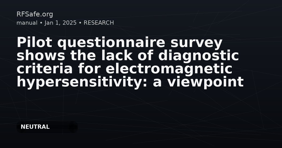 "linkedin": "This 2025 viewpoint reports a pilot questionnaire analysis of 142 self-declared EHS/IEI-EMF individuals, concluding that validated diagnostic criteria and tests for sensitivity to low-level wireless radiation are currently lacking, and recommending controlled provocation and biochemical studies to identify reliable biomarkers."