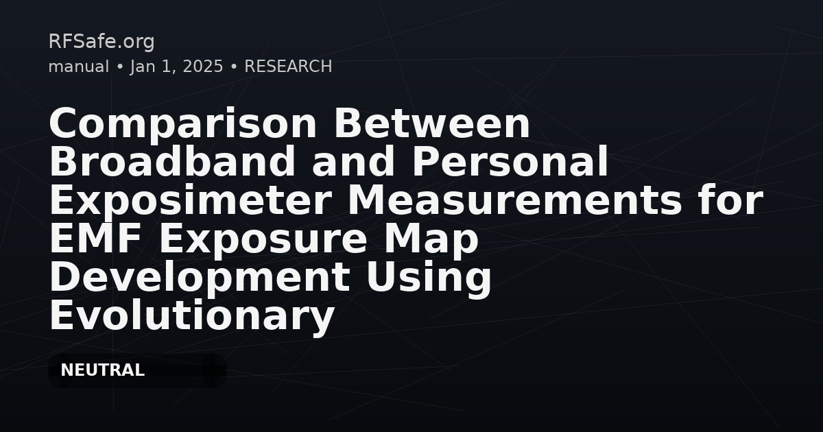Category: Environmental Health Physics Tags: EMF exposure, radiofrequency, personal exposimeter, broadband meter, exposure maps, evolutionary programming, genetic algorithm DOI: 10.3390/app15137471 URL: mdpi.com Overview This study provides a detailed comparison of radiofrequency electromagnetic field (RF-EMF) exposure level maps using two measurement methodologies: a broadband meter (NARDA EMR-300, 100 kHz–3 GHz) and a Personal Exposimeter (Satimo EME Spy 140, 88 MHz–5.8 GHz). The primary aim is to determine necessary corrections to personal exposimeter measurements to achieve equivalence with broadband meter exposure maps. Findings - Analyzed datasets from both methods, exploring single and double correction factors, especially in relation to line of sight (LOS) to base stations. - Reduction of error between devices was a focus for improving the equivalence of measurements. - A genetic algorithm further optimized the proportionality factors depending on LOS versus non-line of sight (NLOS) scenarios, and spatial exposure maps were generated using kriging interpolation. Conclusions - Spot measurements with either device can serve as practical proxies for assessing personal RF-EMF exposure. - Application of LOS/NLOS-specific correction factors considerably improves PEM measurement accuracy, addressing underestimation in LOS situations due to body shielding effects. - Genetic algorithms add precision and enable more reliable urban RF-EMF exposure mapping, making large-scale studies using PEMs both feasible and cost-effective. - Further validation is necessary in different environments to enhance these correction models, with suggestions for future refinements involving urban infrastructure and signal interference factors. Conclusion: This methodology represents a significant advancement for EMF exposure assessment, supporting scalable and flexible generation of consistent EMF exposure maps crucial for public safety and ongoing EMF risk evaluation.