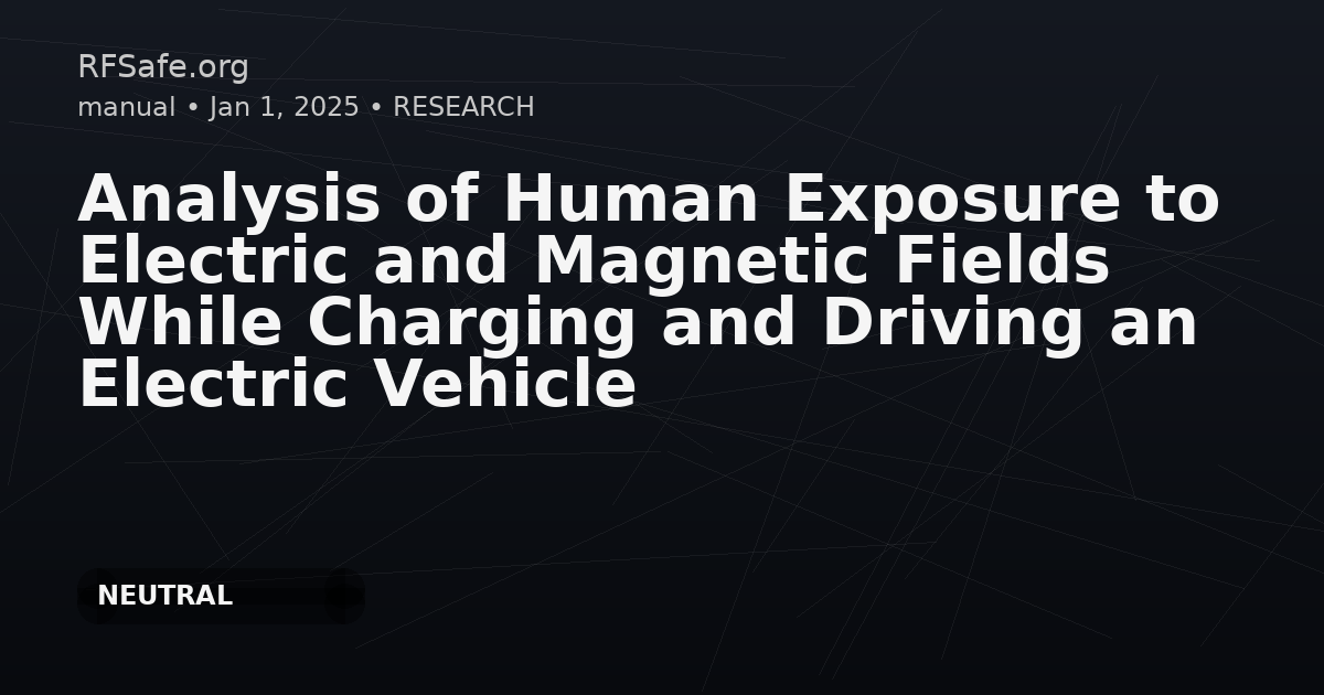 Category: Environmental Health, Electromagnetic Safety Tags: electric vehicles, electromagnetic fields, human exposure, EMF safety, health risks, environmental health, mitigation DOI: 10.1007/978-3-031-95671-3_25 URL: link.springer.com Overview The transition to electric vehicles is a promising strategy to reduce or eliminate harmful emissions, including carbon dioxide, nitrogen oxides, and particulate matter, from internal combustion vehicles. While electric vehicles offer environmental benefits, their operation involves the generation of electromagnetic fields (EMFs) in their immediate vicinity. It is important to note that exposure to artificial EMFs, especially at high-capacity levels and over extended periods, has been linked to potential health risks for humans. Findings - Biological effects of EMFs have been extensively studied, though specific health risks in the context of electric vehicles remain uncertain. - Occupants of electric vehicles experience notable EMF exposure due to their proximity to electrical systems. - Manufacturers recognize these concerns and implement technological solutions in design and manufacturing to reduce EMF exposure. Conclusion This study will conduct experimental measurements of electromagnetic fields generated by electric vehicles during various operations, contributing important data for health and safety guidelines regarding EMF exposure. ⚠ Awareness and minimization of EMF health risks are essential as electric vehicles become more prevalent.