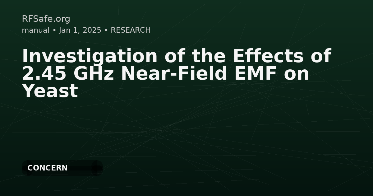 Category: Cellular Biology Tags: EMF, 2.45 GHz, yeast, oxidative stress, DNA damage, microwave radiation, membrane permeability DOI: 10.3390/antiox14070820 URL: mdpi.com Overview This study addresses the critical health and safety concerns regarding the pervasive exposure to 2.45 GHz electromagnetic fields (EMF), particularly as a result of widespread everyday technologies such as mobile devices. Experimental Design - Yeast suspensions were exposed to 2.45 GHz microwave radiation at two distances (2 cm and 4 cm) from the antenna. - Exposure durations were set at 20 and 60 minutes. - Endpoints included UV-absorbing substance release (membrane permeabilization), total intracellular antioxidant activity, reduced glutathione levels, and DNA damage (via comet assay). Findings - A significant correlation was observed between reduced antioxidant activity and increased membrane permeability after 20 minutes of exposure at a 2 cm distance, indicating oxidative stress induced by EMF exposure. - This oxidative stress effect was not replicated through conventional heating, suggesting a specific EMF-related mechanism. - Irradiation for 60 minutes at 4 cm caused a mild increase in membrane permeability; this did not align with a change in cellular antioxidant status. - Both test conditions of EMF exposure showed a trend towards increased DNA damage in yeast cells. Conclusion The research demonstrates clear biological effects of near-field 2.45 GHz EMF exposure on yeast, specifically membrane permeabilization, oxidative stress, and DNA damage. These findings establish a link between EMF exposure and potential health risks, supporting the need for further investigation and caution in the everyday application of such frequencies.