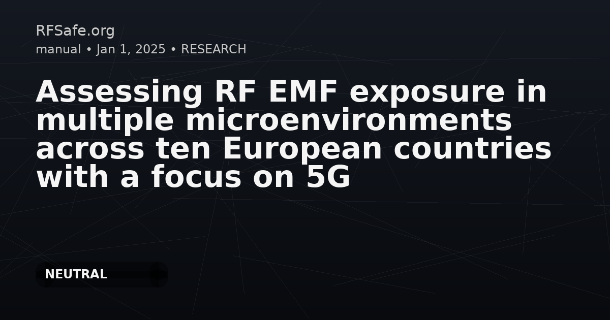 Category: Epidemiology Tags: radiofrequency electromagnetic fields, 5G, environmental exposure, Europe, public health, uplink exposure, precautionary limits DOI: 10.1016/j.envint.2025.109540 URL: sciencedirect.com Overview This study systematically measures environmental, auto-induced downlink (DL), and uplink (UL) radiofrequency electromagnetic field (RF-EMF) exposure across more than 800 microenvironments in ten European countries. The research focuses on the exposure linked to the implementation of 5G, with measurements taken in outdoor, indoor, and public transport environments across two cities and three villages per country. Methodology - Three user scenarios were assessed: flight mode (non-user), induced maximum DL traffic (max DL), and induced maximum UL traffic (max UL). - RF-EMF exposure was measured using an ExpoM-RF 4, covering 35 frequency bands (87.5 MHz - 6 GHz). - The mobile phone was positioned 30 cm from the measurement device during all scenarios. Findings - In the non-user scenario, mean exposure ranged from 0.33 to 1.72 mW/m2 per country, lower in Switzerland, Belgium, and Italy. - RF-EMF levels were, on average, 80% lower in villages compared to cities. - Downlink (DL) bands contributed most to environmental exposure in non-user scenarios. - During max DL, exposure increased mainly due to the 5G 3.5 GHz band, with mean exposure per country between 2.61 and 11.12 mW/m2. - Max UL scenarios saw the highest exposure, with 50% of mean levels per country above 16 mW/m2, particularly high in the Netherlands, Italy, and Belgium. - Villages experienced 35% higher exposure during max UL compared to cities. - Countries with precautionary limits had lower environmental exposure but higher auto-induced uplink exposure during data upload. Conclusion Environmental RF-EMF exposure in non-user scenarios aligns with previous European research and remains below international guideline values, showing little change since the introduction of 5G. Urban settings, due to a denser network, experience greater exposure, primarily from Mobile DL frequency bands. Countries like Switzerland, Italy, and Belgium, with precautionary limits, demonstrated generally lower environmental exposure. However, inducing traffic can substantially increase personal RF-EMF exposure, highlighting the importance of continued research, especially concerning the health impacts from frequent or high-level exposures, and as 5G deployment progresses. Future research should track the evolution of environmental and auto-induced RF-EMF exposure, paying close attention to these changes as 5G technology expands across Europe.