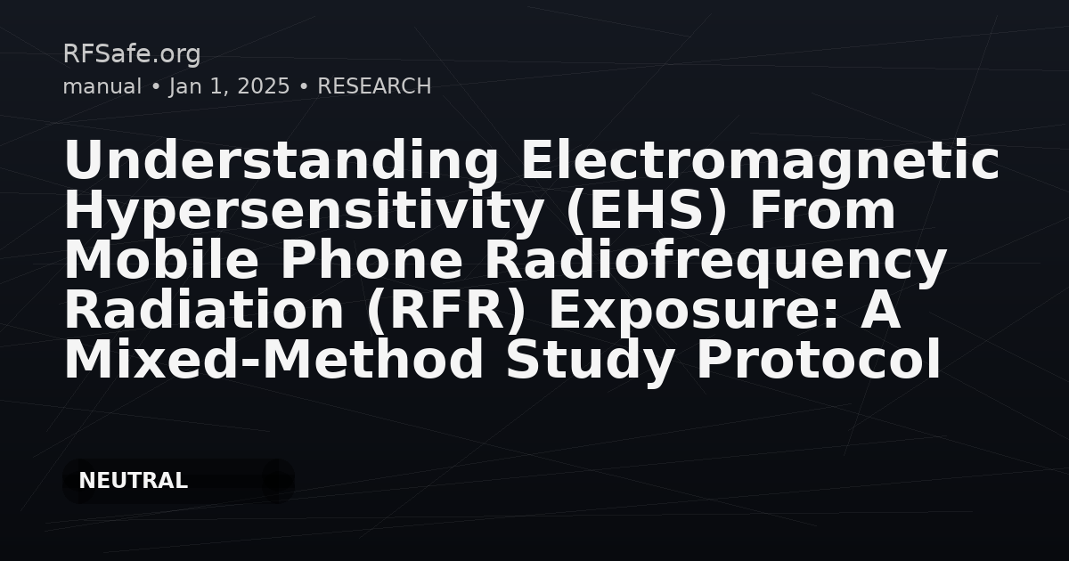 Category: Epidemiology Institution: Universiti Putra Malaysia Tags: electromagnetic hypersensitivity, radiofrequency radiation, mobile phone, biopsychosocial model, undergraduate students, mixed-method study, public health DOI: 10.1002/bem.70007 URL: pubmed.ncbi.nlm.nih.gov Overview More than 7 billion mobile phone users were recorded worldwide in 2022. Radiofrequency radiation (RFR) from mobile phones can produce radiobiological effects, which may lead to electromagnetic hypersensitivity (EHS) in humans. Study Design - This study employs a mixed-method approach: - Quantitative component: Identifies predictors of EHS from mobile phone RFR using the biopsychosocial model. - Qualitative component: Explores individual experiences that contribute to EHS. - Quantitative analysis is conducted using the Statistical Package for the Social Sciences (SPSS) version 25.0 for descriptive and analytical statistics. - Qualitative analysis is carried out with NVivo version 14 for thematic analysis. Findings Findings from both analyses are compared and discussed to highlight similarities and differences, providing a richer, in-depth understanding of EHS resulting from mobile phone RFR exposure among undergraduate students. - The study sample consists of 351 undergraduate students aged 18-25 from Universiti Putra Malaysia (UPM), conducted between April 2023 and December 2023. - Approval was obtained from the Ethics Committee for Research Involving Human Subjects at UPM before the study. - The quantitative component uses a proportionate simple random sampling method with a validated questionnaire. - The qualitative component utilizes purposive sampling through in-depth interviews. Conclusion Enhancing understanding of EHS may contribute to new knowledge and raise awareness of its potential effects on the population. ⚠️ Connection to Health Risk: This study underscores the health risks of electromagnetic field exposure (specifically from mobile phones). EHS is linked to exposure, reinforcing the need for awareness and further research.
