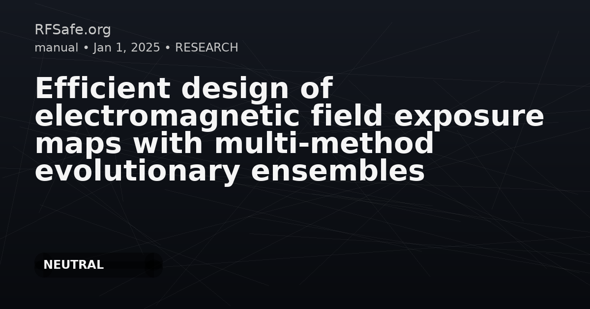 Category: Environmental Research, Electromagnetic Exposure Mapping Institution: Not specified Tags: electromagnetic fields, exposure maps, evolutionary algorithms, public health, radio-frequency, spatial analysis, optimization DOI: 10.1016/j.envres.2025.121636 URL: sciencedirect.com Overview Radio-frequency electromagnetic field (EMF) exposure is a growing concern among the population. This concern has led to a need for practical tools to contribute to an adequate risk perception. Representing spatial variations after measurements from fixed sites and interpolating using different techniques is the most suitable method for obtaining EMF high-quality exposure maps. This paper uses evolutionary computation to obtain the optimal set of points to construct high-quality electromagnetic field exposure maps, minimizing an error measure with respect to a reference exposure map. A multi-method ensemble evolutionary approach, able to combine different search operators in a single population (PCRO-SL), is introduced for this particular problem, and it has been tested over actual measurements at Meco town, Madrid, Spain, obtaining good quality electromagnetic field exposure map reconstructions in terms of the differences with a reference EMF exposure map. Findings - The results show that it is possible to reduce the number of measurement points necessary to obtain significant exposure maps while still maintaining their representativeness. - The density of points required was reduced from the initial 8-10 points/km2 to just over 5 points/km2. - Division of the territory into 250-meter squares can be used for preliminary analysis, but it is necessary to optimize point selection for effective sampling. - At least one point in direct line-of-sight (LOS) within a first radius of 250 meters should be chosen. - Within a 500-meter radius, points should be chosen in different radial directions regardless of LOS/NLOS status to determine exposure variation. - If not included above, points should be placed on the perimeter to avoid interpolation artifacts at the edges. - The criteria established maintain the statistical properties of the measurement set (mean, variance, lognormality). Conclusion The evolutionary-type algorithm reduced the effort required to produce EMF exposure maps and has enabled more accurate perception of exposure risk among the general public. The study highlights the necessity of accurately representing exposure to ensure proper risk assessment relating to health impacts of electromagnetic fields. Future work will address different mobile technologies and measurement techniques for exposure mapping.