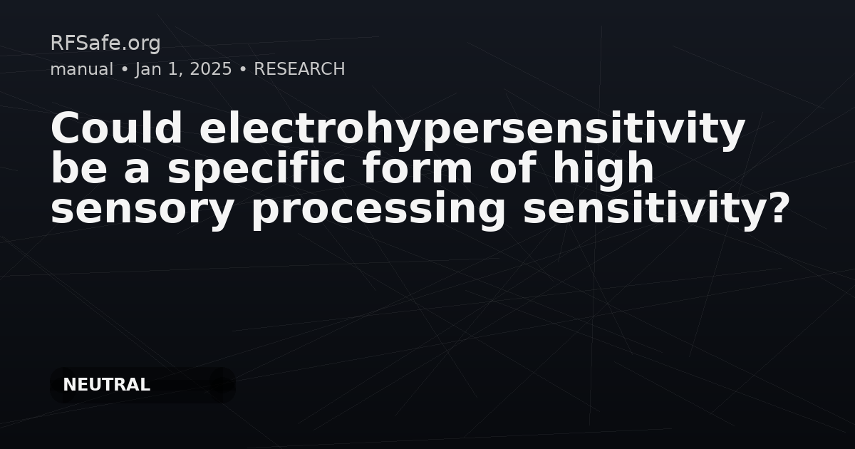 Category: Epidemiology Tags: electrohypersensitivity, sensory processing sensitivity, electromagnetic fields, anxiety, risk perception, avoidance strategies, mental health DOI: 10.3389/fpubh.2025.1550427 URL: frontiersin.org Overview Electrohypersensitivity (EHS) describes individuals who report experiencing a variety of symptoms triggered by exposure to electromagnetic fields. Notably, the patterns of symptoms experienced in EHS are similar to descriptions seen in high sensory processing sensitivity (HSPS). This study explores whether these two phenomena overlap and investigates the potential link between them. Methods - Participants: 100 individuals - Assessment Tools: Questionnaire covering EHS, HSPS, absorption, risk perception, avoidance strategies related to electromagnetic fields, and presence of anxiety and depressive disorders. Findings - A higher proportion of individuals classified as highly sensitive (HSPS) was found among those reporting EHS symptoms. - Significant differences were observed in anxiety and depression symptomatology as well as in cognitive strategies, such as risk perception and avoidance of electromagnetic exposure, among the groups studied. Conclusion The findings support an association between electrohypersensitivity and high sensory processing sensitivity, suggesting that EHS could potentially be understood as a specific manifestation of heightened sensory sensitivity. The authors also discuss avenues for further research and practical interventions for highly sensitive individuals, regardless of whether EHS is directly caused by electromagnetic radiation.