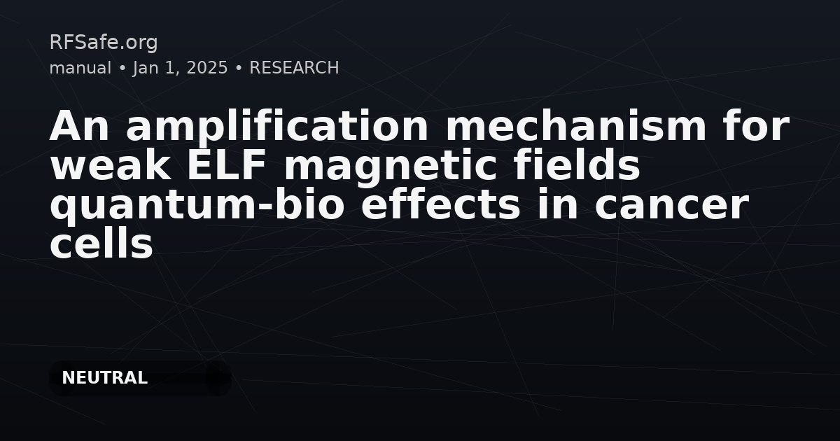 An amplification mechanism for weak ELF magnetic fields quantum-bio effects in cancer cells Zandieh A, Shariatpanahi SP, Ravassipour AA, Azadipour J, Nezamtaheri MS, Habibi-Kelishomi Z, Ghanizadeh M, Same-Majandeh A, Majidzadeh-A K, Taheri A, Ansari AM, Javidi MA, Pirnia MM, Goliaei B. An amplification mechanism for weak ELF magnetic fields quantum-bio effects in cancer cells. Sci Rep. 2025 Jan 23;15(1):2964. doi: 10.1038/s41598-025-87235-w. Abstract Observing quantum mechanical characteristics in biological processes is a surprising and important discovery. One example, which is gaining more experimental evidence and practical applications, is the effect of weak magnetic fields with extremely low frequencies on cells, especially cancerous ones. In this study, we use a mathematical model of ROS dynamics in cancer cells to show how ROS oscillatory patterns can act as a resonator to amplify the small effects of the magnetic fields on the radical pair dynamics in mitochondrial Complex III. We suggest such a resonator can act in two modes for distinct states in cancer cells: (1) cells at the edge of mitochondrial oscillation and (2) cells with local oscillatory patches. When exposed to magnetic fields, the first group exhibits high-amplitude oscillations, while the second group synchronizes to reach a whole-cell oscillation. Both types of amplification are frequency- dependent in the range of hertz and sub-hertz. We use UV radiation as a positive control to observe the two states of cells in DU and HELA cell lines. Application of magnetic fields shows frequency-dependent results on both the ROS and mitochondrial potential which agree with the model for both type of cells. We also observe the oscillatory behavior in the time-lapse fluorescence microscopy for 0.02 and 0.04 Hz magnetic fields. Finally, we investigate the dependence of the results on the field strength and propose a quantum spin-forbidden mechanism for the effect of magnetic fields on superoxide production in QO site of mitochondrial Complex III. Excerpts In a nutshell, our proposed scheme acts in two distinct levels: [I] At the level of superoxide production in mitochondrial ETC where the applied magnetic field can alter production rate of superoxide by closing the energy gap between singlet and triplet state of a radical pair in Complex III. Here the applied magnetic field effectively acts as a static field. And [II] at the level of mitochondrial network, where oscillation of the applied magnetic field (and thus oscillation in the production rate of superoxide) can resonate with the intrinsic frequency of RIRR in cancer cells. At this level, the minor effect of underlying RPM is amplified to affect the physiology of the cell in a frequency-dependent manner.... Conclusion Our study proposed a quantum biological mechanism for the effect of varying small magnetic fields on cancer cells. The frequency dependent effect of magnetic field is here postulated to be the result of interaction of alternating field with the intrinsically oscillatory system of coupled mitochondria via a novel radical pair phenomenon. Here the site of action of the field is suggested to be the semiquinone/FeS radical pair in Complex III of ETC. A magnetic field of the order of few hundreds of millitesla is predicted to populate the triplet state of the radical pair whose electron transfer onto oxygen molecule is restricted by a spin forbidden reaction in half of the cases. This leads to a mild decrease in superoxide production in the presence of such a magnetic field. An oscillatory field can amplify such an effect via a resonance phenomenon in a network of coupled mitochondria in many cell lines. This substantial change in ROS balance can potentially cause physiological effect in the cells, including apoptosis. Our simulations show the mentioned effect can be manifested in two resonance modes: Either triggering the oscillation in network or synchronizing the out of phase oscillatory mitochondria. Our experimental results confirm the suggested model which can explain the previous observations for the first time. The hypothesis was validated by the observation of the synchronization when cells were exposed to sudden UV irradiation. Moreover, we observed a frequency-dependent variation of the ROS concentration and mitochondrial membrane potential under the effect of oscillatory magnetic field in frequencies and intensities suggested by our model. Further in vitro investigation with higher resolution of microscopy and more extensive profile of magnetic field frequencies and intensities can shed light on the detailed components of the involved mechanism. Open access paper: pmc.ncbi.nlm.nih.gov
