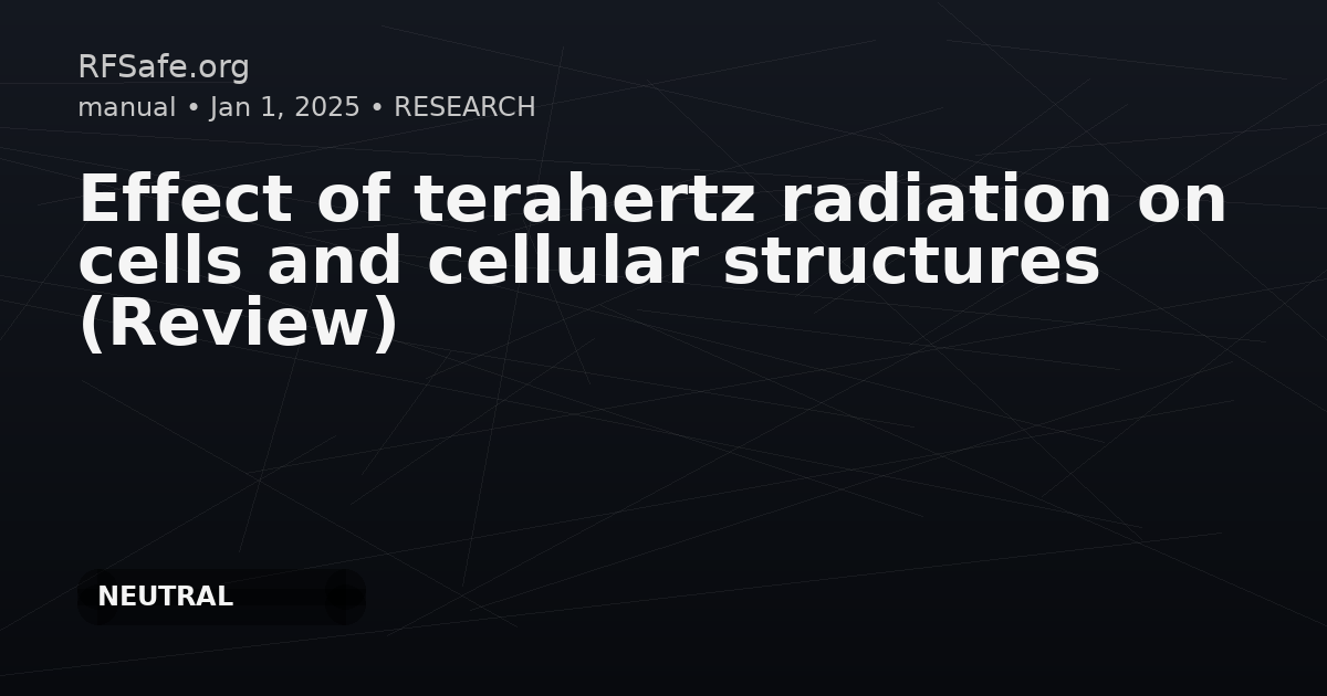 "main_findings": "This review summarizes research on terahertz (0.5–100 THz) electromagnetic radiation at different power densities and exposure times, reporting a variety of cellular effects including disruption of membrane properties, pore formation, ion channel activation, and changes in proliferation and viability. It notes that there is currently no full consensus on whether THz radiation has damaging effects on biological objects at different levels of organization.",
