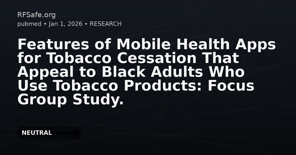"main_findings": "In 8 focus groups with 40 Black adults who use tobacco products, four themes emerged for preferred cessation-app features: (1) representation and inclusivity via personalization and relatable images/health information; (2) inclusion of diverse experiences/testimonials without excessive racial targeting; (3) accountability via trusted connections with health care professionals/support groups and tracking; and (4) encouragement and motivation were preferred over monetary rewards.",