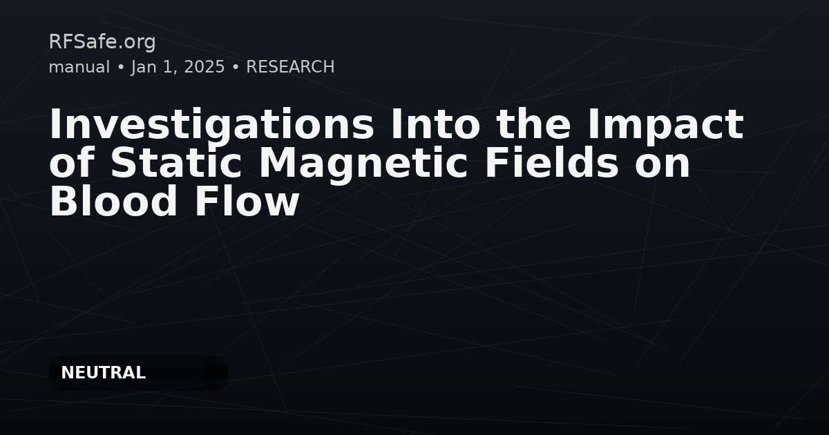 Investigations Into the Impact of Static Magnetic Fields on Blood Flow Mayrovitz HN. Investigations Into the Impact of Static Magnetic Fields on Blood Flow. Cureus. 2025 Jan 26;17(1):e78007. doi: 10.7759/cureus.78007. Abstract Many claims are made regarding the impacts of static magnetic fields (SMFs) on biological and physiological processes. Some of these are based on scientific underpinnings, and others appear to have less evidence to support them. The present report focuses on the evidence regarding SMF's effects on blood flow. Fortuitously, the author has direct experimental experience in this area. The approach for this review was to search three major databases (Web of Science, PubMed, and Embase) for peer- reviewed articles written in English in which an SMF was used in humans or other animals and measurements of parameters related to blood flow or velocity before SMF application and either during or after application were reported. After screening the initial 1,954 articles, 108 studies were retrieved and evaluated for relevancy. Of these, 23 were found to satisfy the inclusion criteria and be relevant. This included 10 studies on humans and 13 studies on other animals. The methods employed in many of these studies are illustrated in this review to enhance understanding of the findings. With regard to human studies, none showed an increase in blood flow, and one showed a decrease in flow. With regard to the animal studies, one showed a transient post-exposure increase that was later explained as due to an actual reduction during SMF exposure. Four studies showed a decrease, four showed no change or difference from sham-exposed animals, and four reported an increase. Of these four, two were from the same author using a method that may not have reflected a blood flow change. Based on these findings, it is concluded that claims of an SMF providing an increase in blood flow or circulation are not supported by human studies and not well supported by animal studies. However, this does not close the door to a possible effect for at least four considerations or limitations that may have impacted the absence of a positive finding in human studies: (1) the number of subjects included is relatively small, which affects the study power; (2) the duration of the SMF application of most studies was relatively short; (3) most studies were done on healthy individuals; and (4) the SMF was delivered perpendicular to the body surface, so the effects of tangential field directions are unknown. Although these provisos may impact the detection of a possible SMF effect, they do not alter the current findings, as no reviewed human study has demonstrated a statistically significant increase in blood circulation attributable to an SMF. Thus, the clinical use of an SMF to improve blood circulation is not supported by experimental evidence. Open access paper: pmc.ncbi.nlm.nih.gov