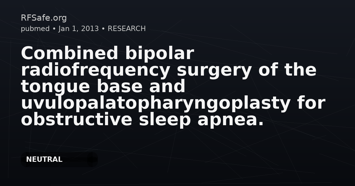Combined bipolar radiofrequency surgery of the tongue base and uvulopalatopharyngoplasty for obstructive sleep apnea.