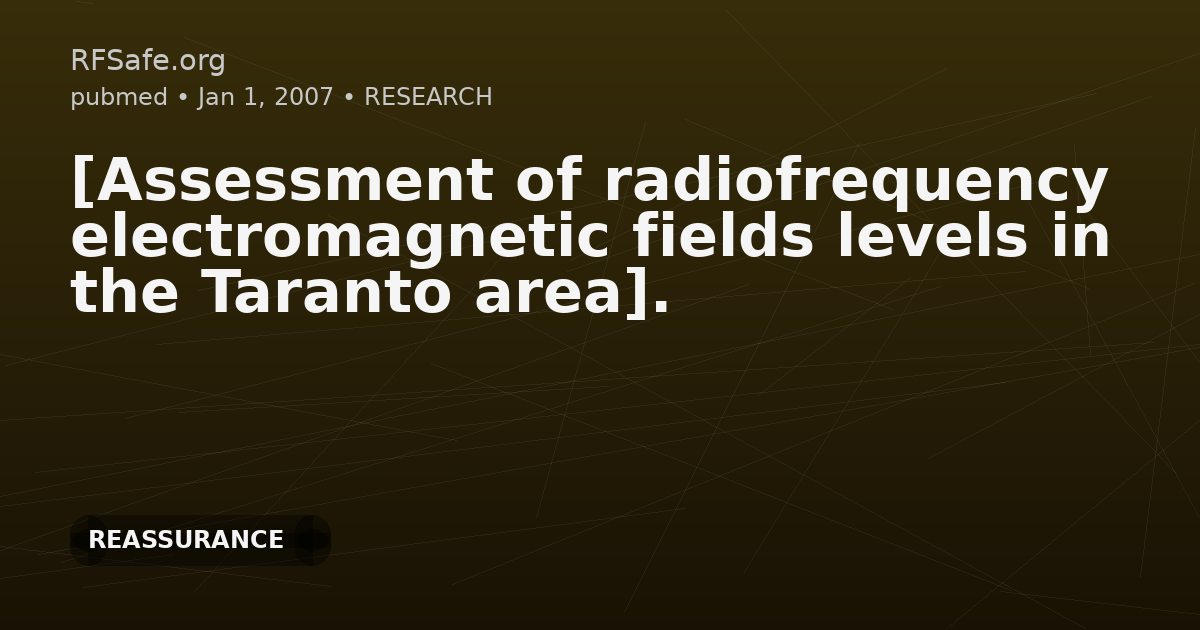 "main_findings": "Measurement campaigns (100 kHz–3 GHz) on 108 transmitting stations (UMTS, GSM, DCS, DVB-H) found that most monitored areas respected limit values. The attention value was exceeded in 2 of 108 cases (both within the borough council area), and in Taranto none of 51 monitored stations exceeded 6 V/m.",