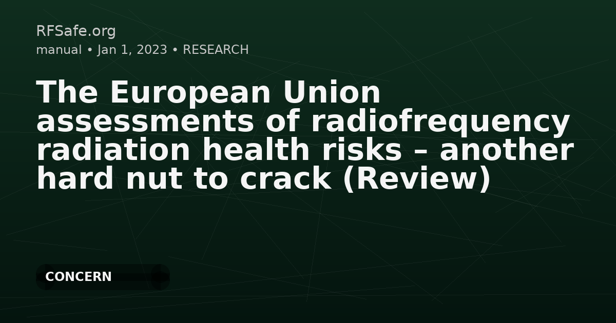 The European Union assessments of radiofrequency radiation health risks – another hard nut to crack (Review) Nyberg R, McCredden J, Hardell L. The European Union assessments of radiofrequency radiation health risks – another hard nut to crack (Review). Reviews on Environmental Health. 2023. doi: 10.1515/reveh-2023-0046. Abstract In 2017 an article was published on the unwillingness of the WHO to acknowledge the health effects associated with the use of wireless phones. It was thus stated that the WHO is ‘A Hard Nut to Crack’. Since then, there has been no progress, and history seems to be repeating in that the European Union (EU) is following in the blind man’s footsteps created by the WHO. Despite increasing evidence of serious negative effects from radiofrequency radiation on human health and the environment, the EU has not acknowledged that there are any risks. Since September 2017, seven appeals by scientists and medical doctors have been sent to the EU requesting a halt to the roll-out of the fifth generation of wireless communication (5G). The millimeter waves (MMW) and complex waveforms of 5G contribute massively harmful additions to existing planetary electromagnetic pollution. Fundamental rights and EU primary law make it mandatory for the EU to protect the population, especially children, from all kinds of harmful health effects of wireless technology. However, several experts associated with the WHO and the EU have conflicts of interest due to their ties to industry. The subsequent prioritizing of economic interests is resulting in human and planetary health being compromised. Experts must make an unbiased evaluation with no conflicts of interest. The seven appeals to the EU have included requests for immediate protective action, which have been ignored. On the issue of wireless radiation and the health of citizens, the EU seems to be another hard nut to crack. Section headings • Introduction • ICNIRP guidelines are an inadequate basis for EU policy • Evidence of harm from wireless EMF provided to EU • Complex real-world exposures not addressed by ICNIRP • 5G science consistent with previous wireless EMF science, warning the EU of harm • Conflicts of interests in ICNIRP and SCENIHR • SCHEER is misleading EU • EU is condoning an unethical mass experiment • Safe, energy efficient alternatives exist • Smart utility meters need to be wired • EU Green Deal compromised by wireless deployment • Fundamental rights, new policy needed • Towards a health protective and energy saving EU policy • Concluding remarks "In 2017 an article was published on the lack of WHO willingness to acknowledge health effects from use of wireless phones. It was stated that WHO is a hard nut to crack [69]. This statement now seems to be true of the EU. In spite of being provided with increasing evidence of the negative effects on human health, no measures have been taken to reduce exposure or to educate people on the risks. On the contrary, ambient exposure has increased [103]. Protests and comments by scientific experts and several organisations including non- governmental organization (NGOs) have been ignored. Instead, the EU has heeded only the opinions of a handful of experts, associated with WHO, ICNIRP, and SCHEER, with conflicts of interest due to ties with industry. Therefore, any opinion these “experts” may give on wireless EMF and human health is compromised. It is urgent that unbiased evaluations of risks be made by experts with no conflicts of interest. In spite of thousands of scientific reports proving harmful effects of wireless EMF, all seven appeals sent to the EU since 2017 have been neglected. These reviews have requested immediate action from the EU on its mandated responsibilities; i.e., to protect humans and the environment instead of promoting industry interests." Open access paper: doi.org