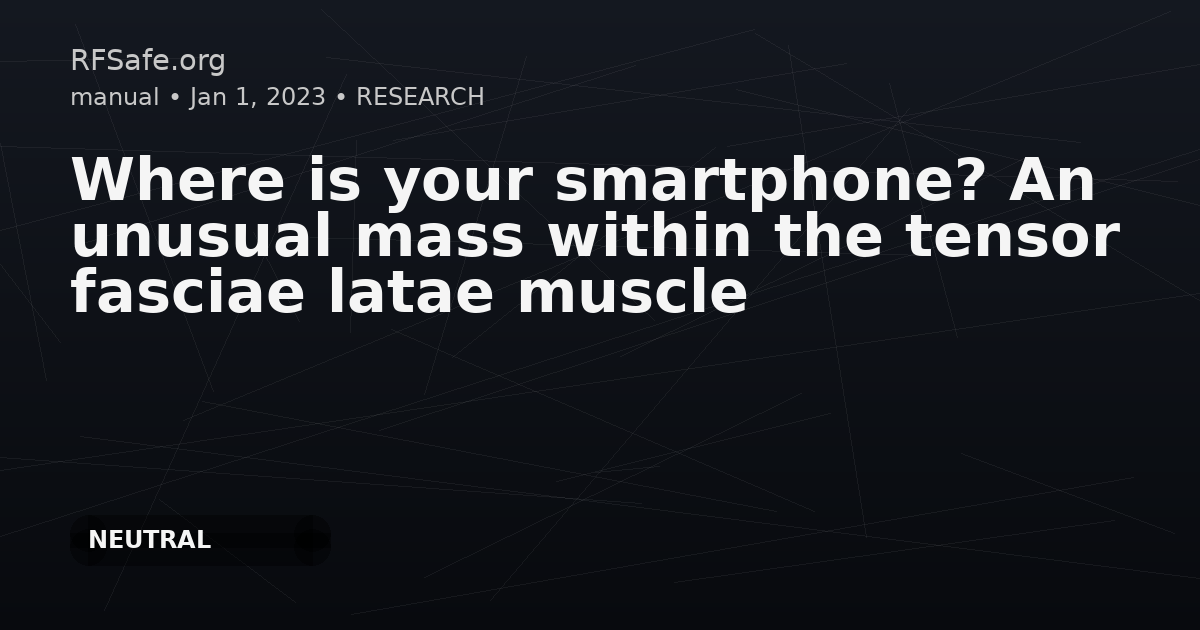 "summary": "This case report describes a 40-year-old man with an intramuscular schwannoma in the left tensor fasciae latae muscle, located where he habitually kept his smartphone in his front left trouser pocket. Imaging (ultrasound, elastography, MRI) characterized the lesion, and the authors note the mass location corresponded to the phone's SIM card position. The authors do not claim causality but speculate the storage habit could be a predisposing factor and call for further research.",