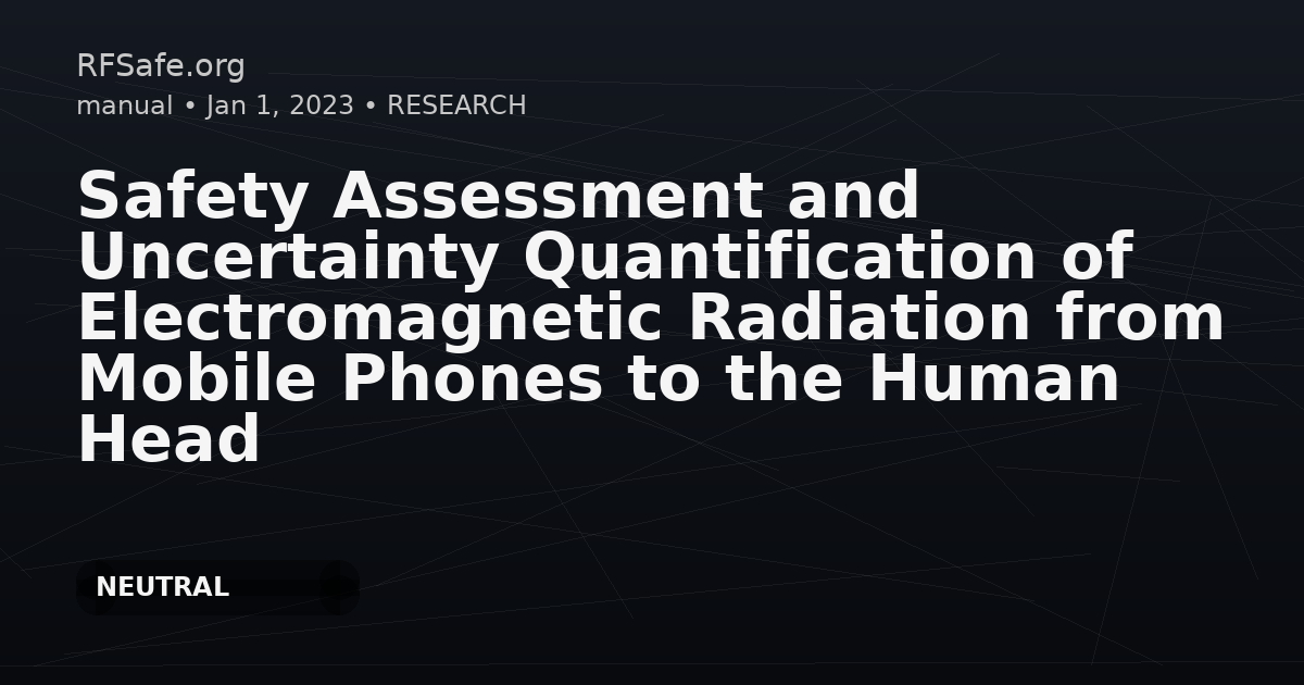 Safety Assessment and Uncertainty Quantification of Electromagnetic Radiation from Mobile Phones to the Human Head Yi M, Wu B, Zhao Y, Su T, Chi Y. Safety Assessment and Uncertainty Quantification of Electromagnetic Radiation from Mobile Phones to the Human Head. Applied Sciences. 2023; 13(14):8107. doi:10.3390/app13148107. Abstract With the rapid development of the mobile communication technology, the design of mobile phones has become more complex, and research on the electromagnetic radiation from mobile phones that reaches the human head has become important. Therefore, first of all, a model of mobile phone daily use was established. Then, based on the established simulation model, the safety of human head exposure to mobile phones was evaluated. The generalized polynomial chaos (gPC) method was used to establish a proxy model of the specific absorption rate (SAR) of the human head at different frequencies to perform a parameter uncertainty quantification (UQ). Finally, the Sobol method was used to quantify the influence of relevant variables on the SAR. The simulation results showed that the gPC method can save time and cost while ensuring accuracy, and the SAR value is greatly influenced by the electromagnetic materials of the mobile phone shell. Combined with the above analysis, this paper can provide reasonable suggestions for the design of mobile phone electromagnetic materials. Open access paper: mdpi.com