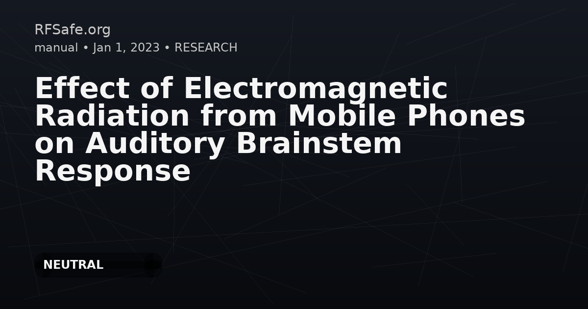 Effect of Electromagnetic Radiation from Mobile Phones on Auditory Brainstem Response Varshney S, Angral S, Aggarwal P et al. Effect of Electromagnetic Radiation from Mobile Phones on Auditory Brainstem Response. Indian J Otolaryngol Head Neck Surg (2023). doi-org: 10.1007/s12070-022-03384-8. Abstract Mobile phones are being used by around 70% of the global population. A simple non-invasive procedure to detect early impairment of the acoustic nerve and auditory pathway is by auditory brainstem response (ABR). It’s a response to the sound stimulus generated from the brainstem in the form of electrical impulses. To determine the effect of long-term usage of mobile phones on auditory brainstem responses (ABRs). This Epidemiological, cross-sectional study was undertaken at a tertiary care hospital and includes 865 individuals aged between 18 to 45 years using mobile phone for > 2 years. Users were categorized into various groups according to the minutes of mobile usage per day, years of mobile usage and total duration of mobile phone use in dominant (mobile using) and non-Dominant (non-mobile using) ears. The changes in ABR were studied in each ear to ascertain the effect of EMF exposure due to chronic mobile phone use. Mean age of subjects was 27.01 years. (M: F = 1.57:1.0). Range of mobile phone usage was from 4 to 900 min/day, with mean as 85.94 min/day. No significant differences were seen between dominant and non-dominant ears in regard to amplitudes of wave I, III and V, latencies of wave I and V and Inter peak latency (IPL) of wave I–III, III–V and I–V. No statistically significant difference for I–III, III–V and I–V IPL were found b/w two groups/ears except for usage of mobile phone for > 180 min/day in wave I–V, usage for 0–4 years in wave I–III and I–V and net hours usage for > 1500 h in wave I–V. The mean IPL in all the waves increases with the increase in years of mobile usage and is maximum in all waves in > 12 years mobile users. The long-term exposure to EMF does induce measurable changes in ABRs. Amplitude and IPLs of ABR were found comparable between the dominant and non-dominant ears using mobile phones, except for those using mobile usage for > 180 min/day and with increasing years of usage of mobile phone. Therefore, prudent use of mobile phone should be encouraged for a shorter period of time and for essential purpose only. Conclusion Amplitude and inter wave latencies of ABR were found comparable between the dominant and non-dominant ears using mobile phones, except for maximum prolongation in IPL Wave I–III (m sec) and significant increase latencies in both ears on mobile usage of > 180 min and with increasing years of usage of mobile phone. The results of the present study may appear comforting in terms of the effects of mobile telephones on auditory pathway, this does not mean that the use of mobile phone should be encouraged. Individuals who use mobiles for longer duration (both daily and cumulative) are more prone for earlier otological disturbances as they are exposed to the EMRs to the maximum link.springer.com