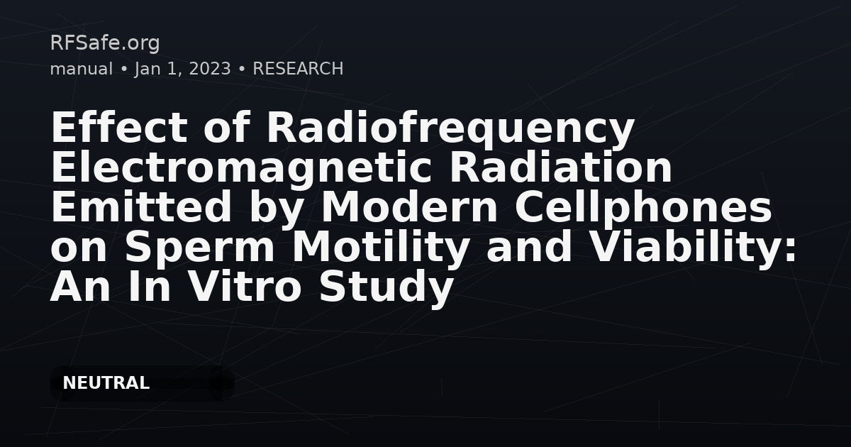 Effect of Radiofrequency Radiation Emitted by Modern Cellphones on Sperm Motility and Viability: An In Vitro Study Chu KY, Khodamoradi K, Blachman-Braun R, Dullea A, Bidhan J, Campbell K, Zizzo J, Israeli J, Kim M, Petrella F, Ibrahim E, Ramasamy R. Effect of Radiofrequency Electromagnetic Radiation Emitted by Modern Cellphones on Sperm Motility and Viability: An In Vitro Study. Eur Urol Focus. 2023 Jan;9(1):69-74. doi: 10.1016/j.euf.2022.11.004. Abstract Background: Cellphones emit radiofrequency electromagnetic radiation (RF-EMR) for transmission of data for social media communication, web browsing, and music/podcast streaming. Use of Bluetooth earbuds has probably prolonged the time during which cellphones reside in the trouser pockets of men. It has been postulated that RF-EMR increases oxidative stress and induces free radical formation. Objective: To investigate the effect of wireless-spectrum (4G, 5G, and WiFi) RF-EMR emitted by modern smartphones on sperm motility and viability and explore whether these effects can be mitigated using a physical barrier or distance. Design, setting, and participants: Semen samples were obtained from fertile normozoospermic men aged 25-35 yr. A current-generation smartphone in talk mode was used as the RF-EMR source. A WhatsApp voice call was made using either 4G, 5G, or WiFi wireless connectivity. We determined if exposure effects were mitigated by either a cellphone case or greater distance from the semen sample. Outcome measurements and statistical analysis: The semen samples were analyzed according to 2010 World Health Organization laboratory guidelines. Statistical analysis was performed using SPSS v.28. Results and limitations: We observed decreases in sperm motility and viability with WiFi exposure but not with exposure to 4G or 5G RF-EMR. With large variability among smartphones, continued research on exposure effects is needed. Conclusions: Our exploratory study revealed that sperm motility and viability are negatively impacted by smartphones that use the WiFi spectrum for data transmission. Patient summary: We looked at the effect of cellphone use on sperm motility and viability. We found that cellphones using WiFi connectivity for data usage have harmful effects on semen quality in men. Excerpts Our study is not without limitations. First, our small sample size of 18 introduces potential sources of bias. We did not collect demographic data for these patients in order to maintain privacy, so the results may be subject to confounding bias. As the first of its kind at our institution, this small trial was a pilot study to validate our experimental model and procedures. We hope that further studies on the effects of RF-EMR on semen parameters can be performed on larger samples to validate our initial results. Second, we recognize that other potential variables, including temperature and radiation strength, could play a role in inducing changes in semen parameters. For this preliminary study, we were only interested in a single variable (radiation); future work should investigate the impact of temperature and radiation strength on changes in semen. This was an exploratory in vitro study, and further in vivo studies in animal models should be performed to further evaluate the impact of radiation on semen parameters. Conclusions Our study revealed that 4G/5G RF-EMR emitted by a contemporary cellphone did not have negative effects on sperm motility and viability. By contrast, WiFi exposure did have negative effects. During data use, there may be an increase in heat dissipated by a cellphone, depending on the power required to connect to the source. Interestingly, we observed varying effects of WiFi on sperm parameters, depending on the environment. We posit that a greater distance from the wireless router results in a need for more cellphone power, which may lead to greater heat production and result in negative effects on sperm motility and viability. Mitigation measures such as use of a cellphone case and increasing the distance between the cellphone and the sperm sample lessened the effects. Further studies need to be performed to better understand the effects of RF-EMR on sperm parameters. pubmed.ncbi.nlm.nih.gov