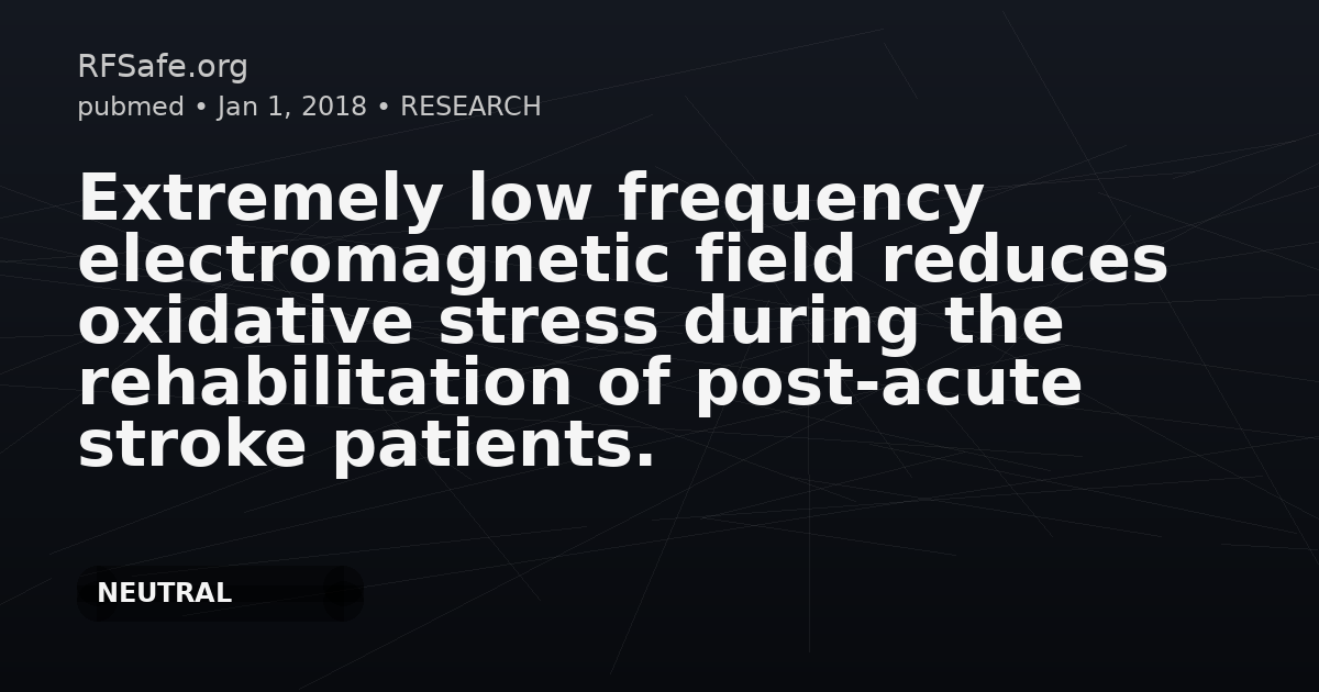Extremely low frequency electromagnetic field reduces oxidative stress during the rehabilitation of post-acute stroke patients.
