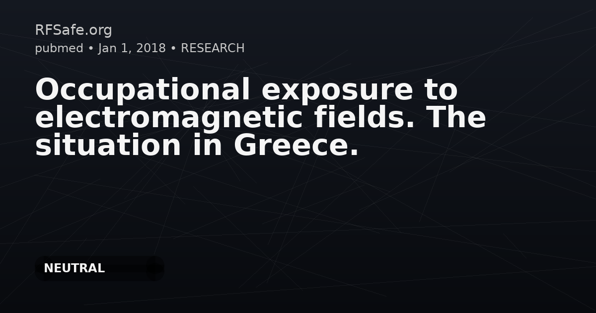 "main_findings": "Across multiple workplace settings in Greece, most EMF exposure assessments did not identify occupational overexposures; in most cases even general public exposure limits were not exceeded. A small number of localized overexposures were found and described as manageable with technical/organizational OHS measures, while maintenance procedures more often presented overexposures.",