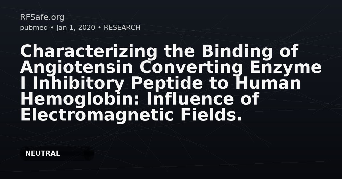 Characterizing the Binding of Angiotensin Converting Enzyme I Inhibitory Peptide to Human Hemoglobin: Influence of Electromagnetic Fields.