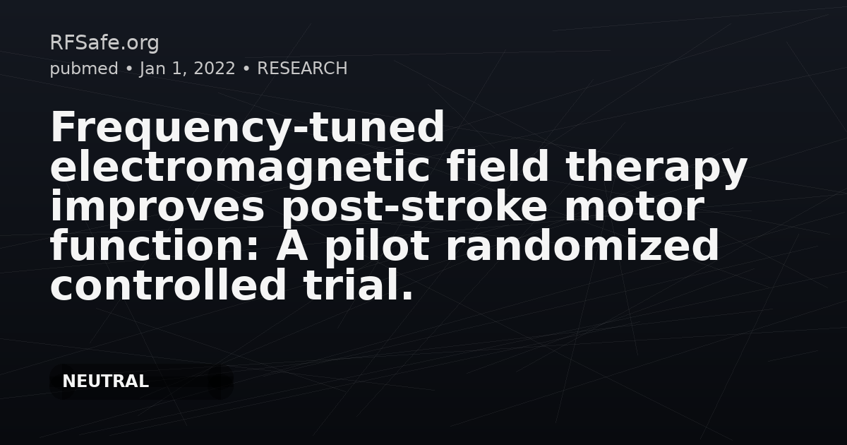 Frequency-tuned electromagnetic field therapy improves post-stroke motor function: A pilot randomized controlled trial.
