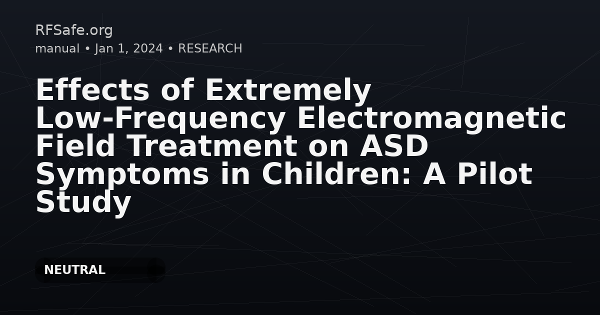 Effects of Extremely Low-Frequency Electromagnetic Field Treatment on ASD Symptoms in Children: A Pilot Study