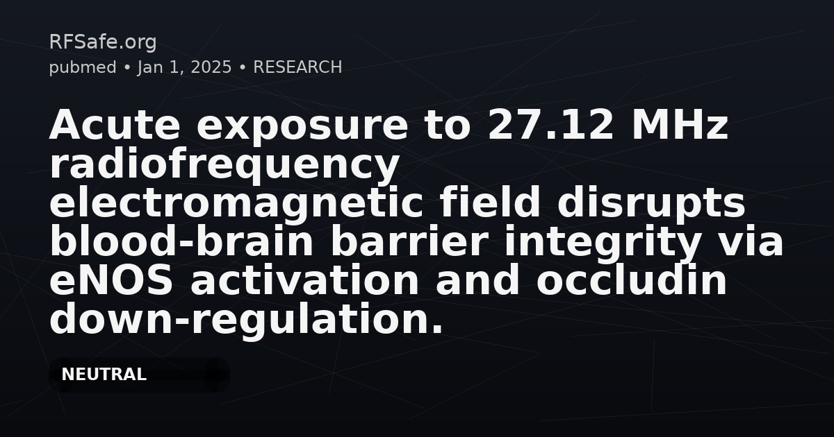 Acute exposure to 27.12 MHz radiofrequency electromagnetic field disrupts blood-brain barrier integrity via eNOS activation and occludin down-regulation.