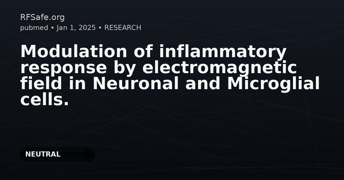 "main_findings": "In an in vitro TNF-α-induced pro-inflammatory model, stimulation with two low-frequency EMF conditions reduced transcriptional levels of inflammatory target genes in both neuronal and microglial cell lines at 24 and/or 48 hours.",