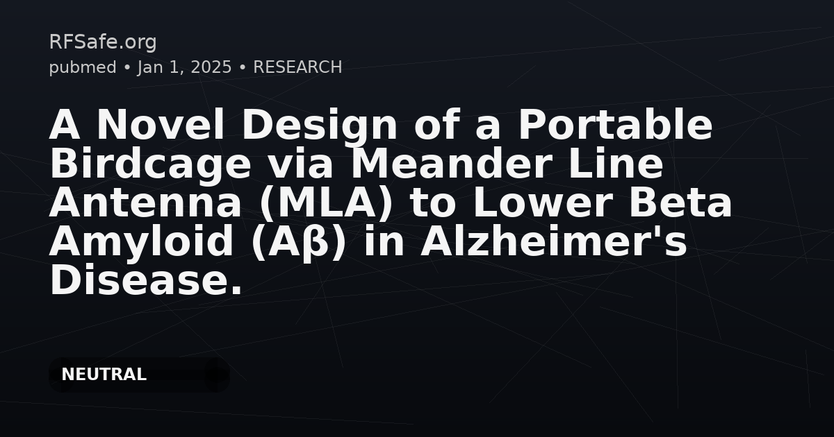"main_findings": "PHB cultures exposed to 64 MHz RF with SAR 0.6 W/kg for 1 hour daily for 14 days showed significantly reduced secreted Aβ-42 and Aβ-40 (p=0.001) without evidence of toxicity. The paper reports an engineering design (ANSYS HFSS) of a portable flexible birdcage/MLA antenna intended to deliver homogeneous RF power deposition with SAR 0.4–0.9 W/kg to memory-related brain areas in numerical head models, with predicted temperature rise <0.5°C over 1 hour.",