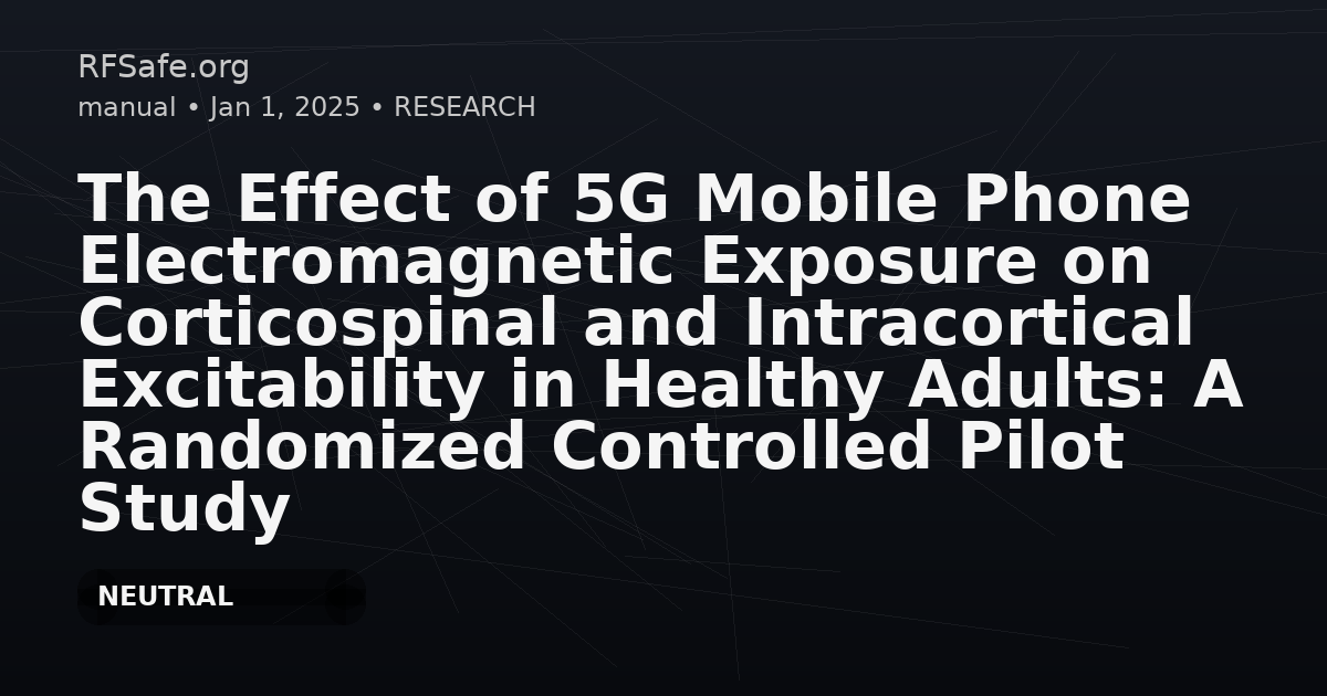 The Effect of 5G Mobile Phone Electromagnetic Exposure on Corticospinal and Intracortical Excitability in Healthy Adults: A Randomized Controlled Pilot Study