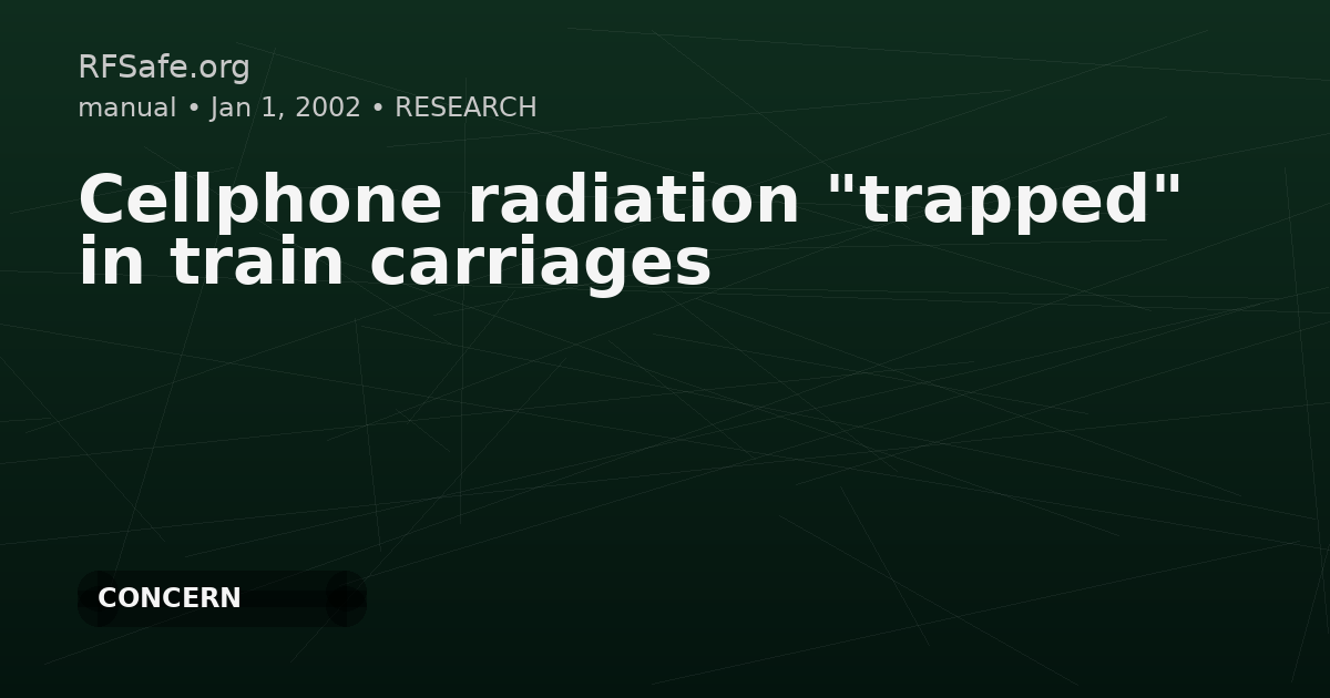 "main_findings": "Using a calculation based on train carriage geometry, window area, reflection, and cumulative emissions from multiple mobile phones, the study found that electromagnetic field levels in a train carriage could exceed the maximum exposure level recommended by ICNIRP.",
