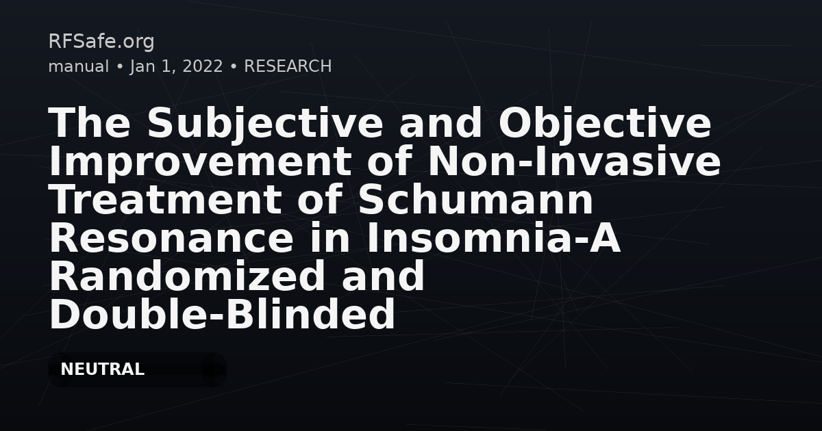 "reason": "Randomized double-blind trial of ELF (Schumann resonance) device assessing insomnia and sleep outcomes."