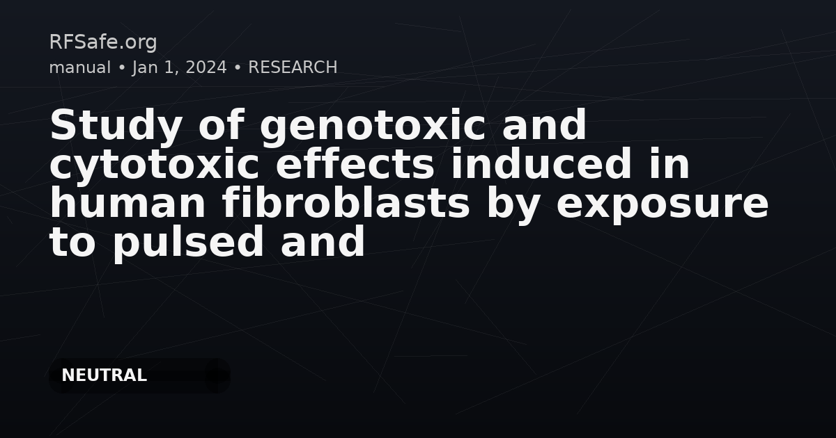 Study of genotoxic and cytotoxic effects induced in human fibroblasts by exposure to pulsed and continuous 1.6 GHz radiofrequency Massaro L, De Sanctis S , Franchini V, Regalbuto E, Alfano G, Focaccetti C, Benvenuto M, Cifaldi L, Sgura A, Berardinelli F, Marinaccio J, Barbato F, Rossi E, Nardozi D, Masuelli L, Bei R, Lista F. Study of genotoxic and cytotoxic effects induced in human fibroblasts by exposure to pulsed and continuous 1.6 GHz radiofrequency. Frontiers in Public Health, Vol 12. 2024. doi: 10.3389/fpubh.2024.1419525. Abstract Background The widespread use of radiofrequency (RF) sources, ranging from household appliances to telecommunications devices and military equipment, raises concerns among people and regulatory agencies about the potential health risks of RF exposure. Consequently, several in vitro and in vivo studies have been done to investigate the biological effects, in particular non-thermal, of this non- ionizing radiation. To date, this issue is still being debated due to the controversial results that have been reported. Furthermore, the impact of different RF signal modulations on biological systems remains poorly investigated. The present in vitro study aims to evaluate the cytotoxicity and genotoxicity of continuous or pulsed 1.6 GHz RF in human dermal fibroblasts (HDF). Methods HDF cultures were exposed to continuous and pulsed 1.6 GHz RF, for 2 h, with Specific Absorption Rate (SAR) of 0.4 W/kg. The potential biological effects of 1.6 GHz RF on HDF were assessed with a multi-methodological approach, analyzing the effects on cell cycle, ultrastructure, protein expression, mitotic spindle, CREST stained micronuclei, chromosome segregation and γ-H2AX/53BP1 foci. Results 1.6 GHz RF exposure modified proteins expression and morphology of HDF. Specifically, the expression of different heat-shock proteins (HSP) (i.e., HSP-90, HSP-60, and HSP-25) and phospho-AKT were affected. In addition, both continuous and pulsed RF modified the cytoskeletal organization in HDF and increased the number of lysosomes, while the formation of autophagosomes was observed only after pulsed RF exposure. Mitotic spindle anomalies were also found after exposure. However, no significant effect was observed on cell cycle, chromosome segregation, CREST-stained micronuclei and γ- H2AX/53BP1 foci. Conclusion The results of the present study show the absence of genotoxic damage in 1.6 GHz RF exposed HDF and, although mitotic spindle alterations were observed, they did not have an aneugenic effect. On the other hand, changes in some proteins expression and cell ultrastructure in exposed HDF suggest that RF can potentially induce cell alterations at the morphological and molecular levels. Excerpt In this controversial scientific scenario, our results are in agreement with most in vitro findings on different cell models about the lack of genotoxic damage induced by RF, either clastogenic or aneugenic. Despite this, we find alterations of the mitotic spindle, with a significant increase in multipolar spindles following PW exposure and we also observed a tendency of RF to induce non-disjunction events with both signals. However, our study reveals an increase in these spindle abnormalities without a concomitant increase in MN-positive CREST, suggesting no aneuploidy effect probably due to spindle abnormalities reversion, as proposed by other authors (78). Nonetheless, this apparent discordant result requires further investigations. The reported observations indeed highlight the complexity of cellular response to RF and emphasize the need for further investigations to clarify the overall biological effects of 1.6 GHz PW and CW RF, given the widespread and constant public RF-EMF exposure, mostly due to mobile communication devices. Open access paper: frontiersin.org health/articles/10.3389/fpubh.2024.1419525