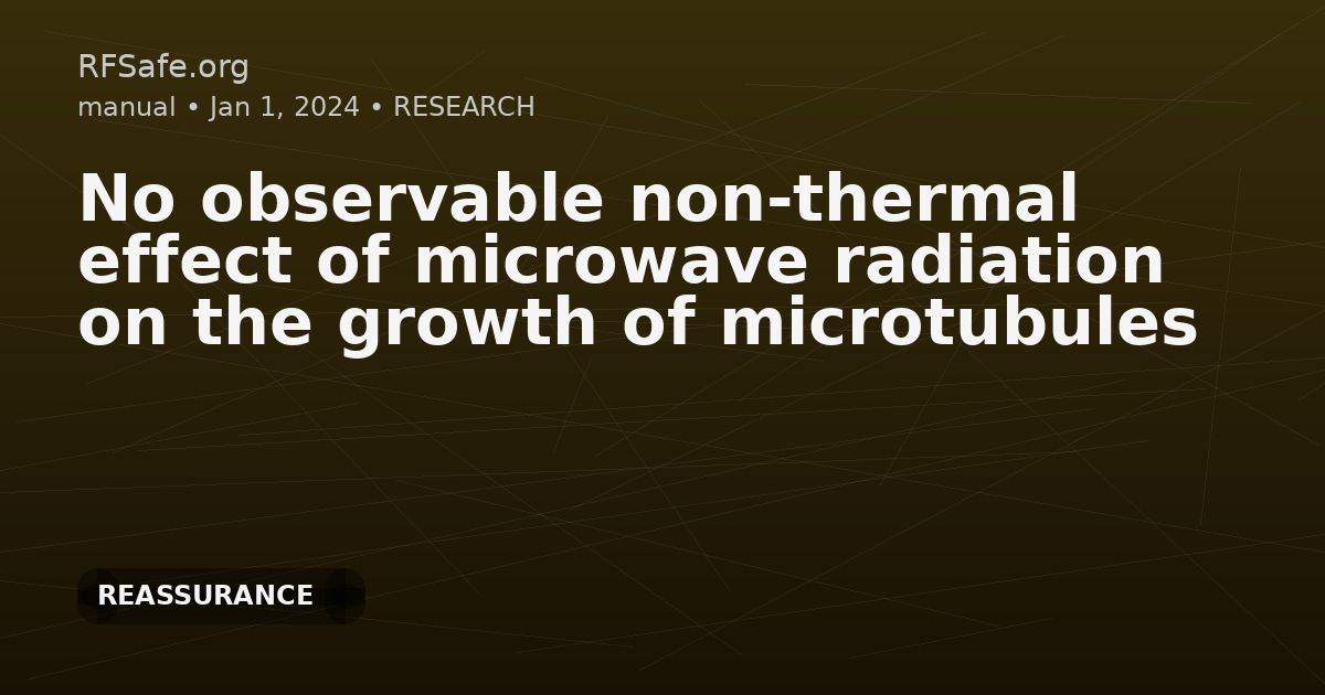 No observable non-thermal effect of microwave radiation on the growth of microtubules Hammarin G, Norder P, Harimoorthy R, Chen G, Berntsen P, Widlund PO, Stoij C, Rodilla H, Swenson J, Brändén G, Neutze R. No observable non-thermal effect of microwave radiation on the growth of microtubules. Sci Rep. 2024 Aug 7;14(1):18286. doi: 10.1038/s41598-024-68852-3. Abstract Despite widespread public interest in the health impact of exposure to microwave radiation, studies of the influence of microwave radiation on biological samples are often inconclusive or contradictory. Here we examine the influence of microwave radiation of frequencies 3.5 GHz, 20 GHz and 29 GHz on the growth of microtubules, which are biological nanotubes that perform diverse functions in eukaryotic cells. Since microtubules are highly polar and can extend several micrometres in length, they are predicted to be sensitive to non-ionizing radiation. Moreover, it has been speculated that tubulin dimers within microtubules might rapidly toggle between different conformations, potentially participating in computational or other cooperative processes. Our data show that exposure to microwave radiation yields a microtubule growth curve that is distorted relative to control studies utilizing a homogeneous temperature jump. However, this apparent effect of non-ionizing radiation is reproduced by control experiments using an infrared laser or hot air to heat the sample and thereby mimic the thermal history of samples exposed to microwaves. As such, no non-thermal effects of microwave radiation on microtubule growth can be assigned. Our results highlight the need for appropriate control experiments in biophysical studies that may impact on the sphere of public interest. Open access paper: nature.com