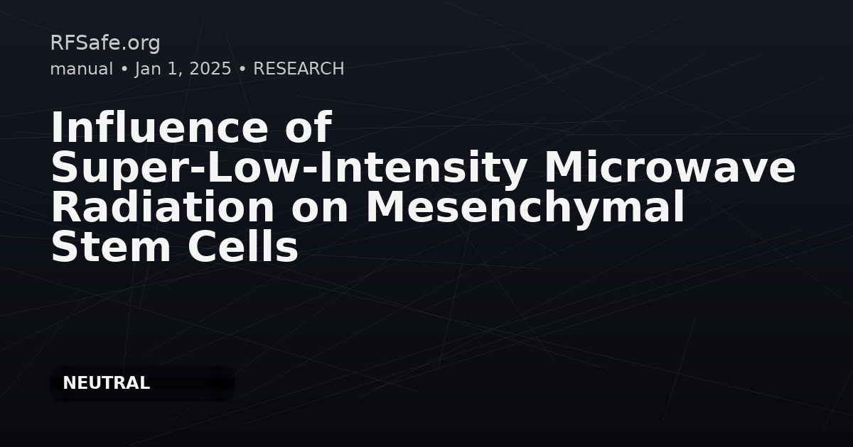 Influence of Super-Low-Intensity Microwave Radiation on Mesenchymal Stem Cells Artamonov MY, Pyatakovich FA, Minenko IA. Influence of Super-Low-Intensity Microwave Radiation on Mesenchymal Stem Cells. International Journal of Molecular Sciences. 2025; 26(4):1705. doi.org Abstract Mesenchymal stem cells (MSCs) have emerged as a promising tool for regenerative medicine due to their multipotency and immunomodulatory properties. According to recent research, exposing MSCs to super-low-intensity microwave radiation can have a significant impact on how they behave and operate. This review provides an overview of the most recent studies on the effects of microwave radiation on MSCs with power densities that are much below thermal values. Studies repeatedly show that non- thermal mechanisms affecting calcium signaling, membrane transport, mitochondrial activity, along ion channel activation may increase MSC proliferation, differentiation along mesodermal lineages, paracrine factor secretion, and immunomodulatory capabilities during brief, regulated microwave exposures. These bioeffects greatly enhance MSC regeneration capability in preclinical models of myocardial infarction, osteoarthritis, brain damage, and other diseases. Additional study to understand microwave treatment settings, biological processes, and safety assessments will aid in the translation of this unique, non-invasive strategy of activating MSCs with microwave radiation to improve cell engraftment, survival, and tissue healing results. Microwave-enhanced MSC treatment, if shown safe and successful, might have broad relevance as a novel cell-based approach for a variety of regenerative medicine applications. Open access paper: mdpi.com
