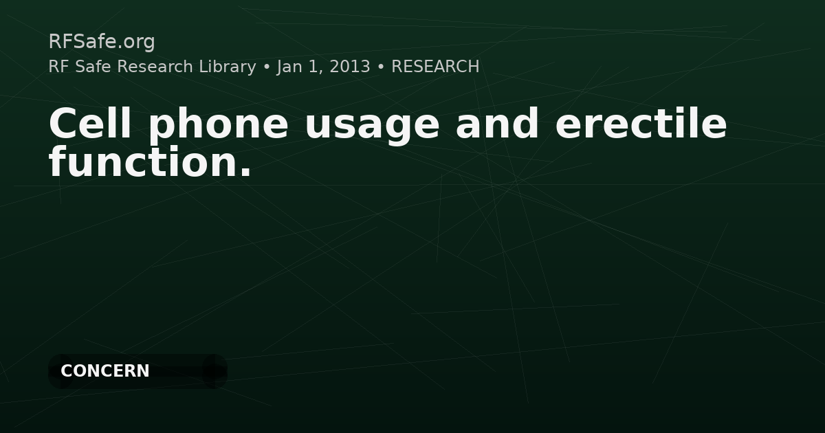 This pilot case-control study compared 20 men with erectile dysfunction to 10 healthy controls using SHIM/IIEF scores and a questionnaire on cell phone habits. Weekly call time was not significantly different between groups, but men with ED reported significantly longer daily time carrying a switched-on phone. The authors interpret this as a potential correlation between cell phone usage and reduced erectile function and call for larger studies.