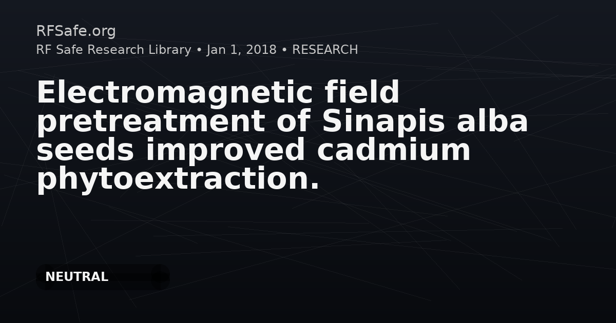 This laboratory study tested whether brief ELF-EMF seed pretreatment could enhance cadmium accumulation in white mustard seedlings. Seeds exposed to 50 Hz alternating EMF (60 or 120 mT) for 1 minute produced shoots with higher cadmium content than controls, while biomass was unchanged. The authors suggest potential utility for cadmium phytoextraction, noting that further research is needed.