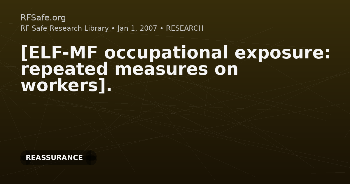 This occupational exposure assessment used personal dosimeters to estimate ELF magnetic field exposure in 543 workers across 9 occupational settings in Emilia-Romagna. Median time-weighted average exposure was 0.14 microT, with tile production showing the highest setting-level TWA. Repeat measurements after 6–9 months in about 10% of participants showed no variation, and exposures were characterized as low compared with proposed occupational limits.