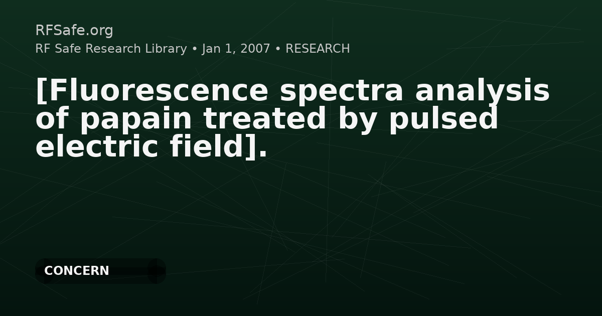 This in vitro study used fluorescence excitation, emission, and polarization spectra to assess structural changes in papain after pulsed electric field (PEF) treatment. Under the reported PEF conditions (50 kV/cm, 1500 Hz, 40 µs pulses, 19,800 pulses), papain activity decreased by 56.5%. Spectral changes (increased excitation intensity, emission peak shift, reduced polarization) were interpreted as alpha-helix loosening/breakdown and exposure of fluorescent residues, potentially explaining enzyme inactivation.
