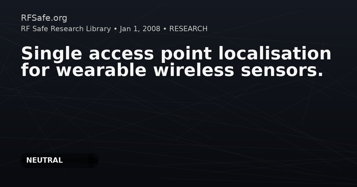 Single access point localisation for wearable wireless sensors.
