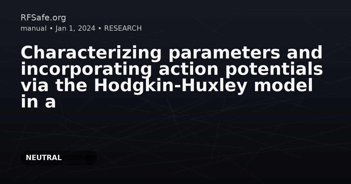 Characterizing parameters and incorporating action potentials via the Hodgkin-Huxley model in a novel electric model for living cells Bougandoura O, Achour Y, Zaoui A, Starzyński J. Characterizing parameters and incorporating action potentials via the Hodgkin-Huxley model in a novel electric model for living cells. Electromagn Biol Med. 2024 Jul 2;43(3):187-203. doi: 10.1080/15368378.2024.2372107. Abstract To enhance our understanding of electroporation and optimize the pulses used within the frequency range of 1 kHz to 100 MHz, with the aim of minimizing side effects such as muscle contraction, we introduce a novel electrical model, structured as a 2D representation employing exclusively lumped elements. This model adeptly encapsulates the intricate dynamics of living cells' impedance variation. A distinguishing attribute of the proposed model lies in its capacity to decipher the distribution of transmembrane potential across various orientations within living cells. This aspect bears critical importance, particularly in contexts such as electroporation and cellular stimulation, where precise knowledge of potential gradients is pivotal. Furthermore, the augmentation of the proposed electrical model with the Hodgkin-Huxley (HH) model introduces an additional dimension. This integration augments the model's capabilities, specifically enabling the exploration of muscle cell stimulation and the generation of action potentials. This broader scope enhances the model's utility, facilitating comprehensive investigations into intricate cellular behaviors under the influence of external electric fields. pubmed.ncbi.nlm.nih.gov